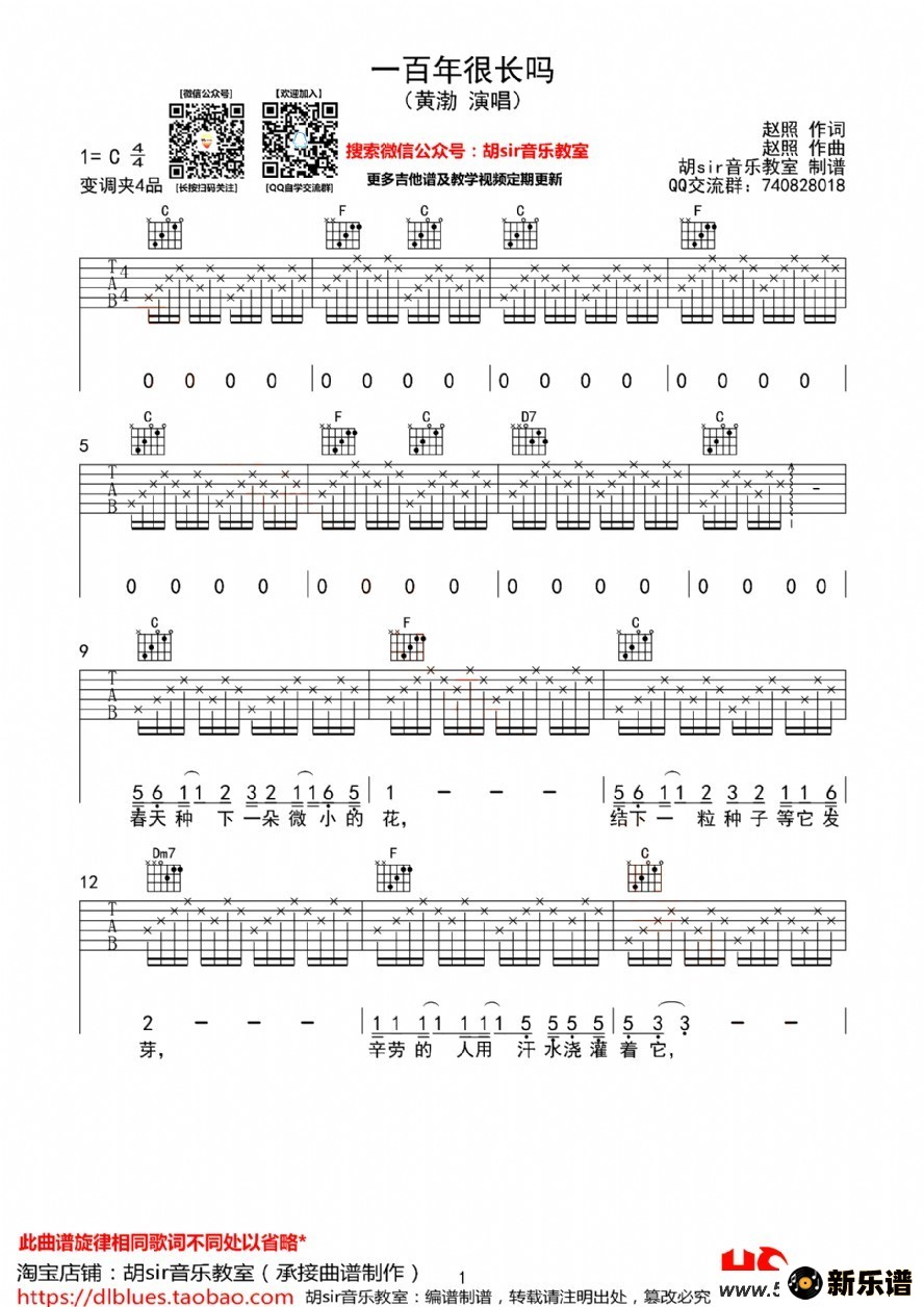 黄渤演唱的一百年很长吗歌词,一百年很长吗吉他谱.