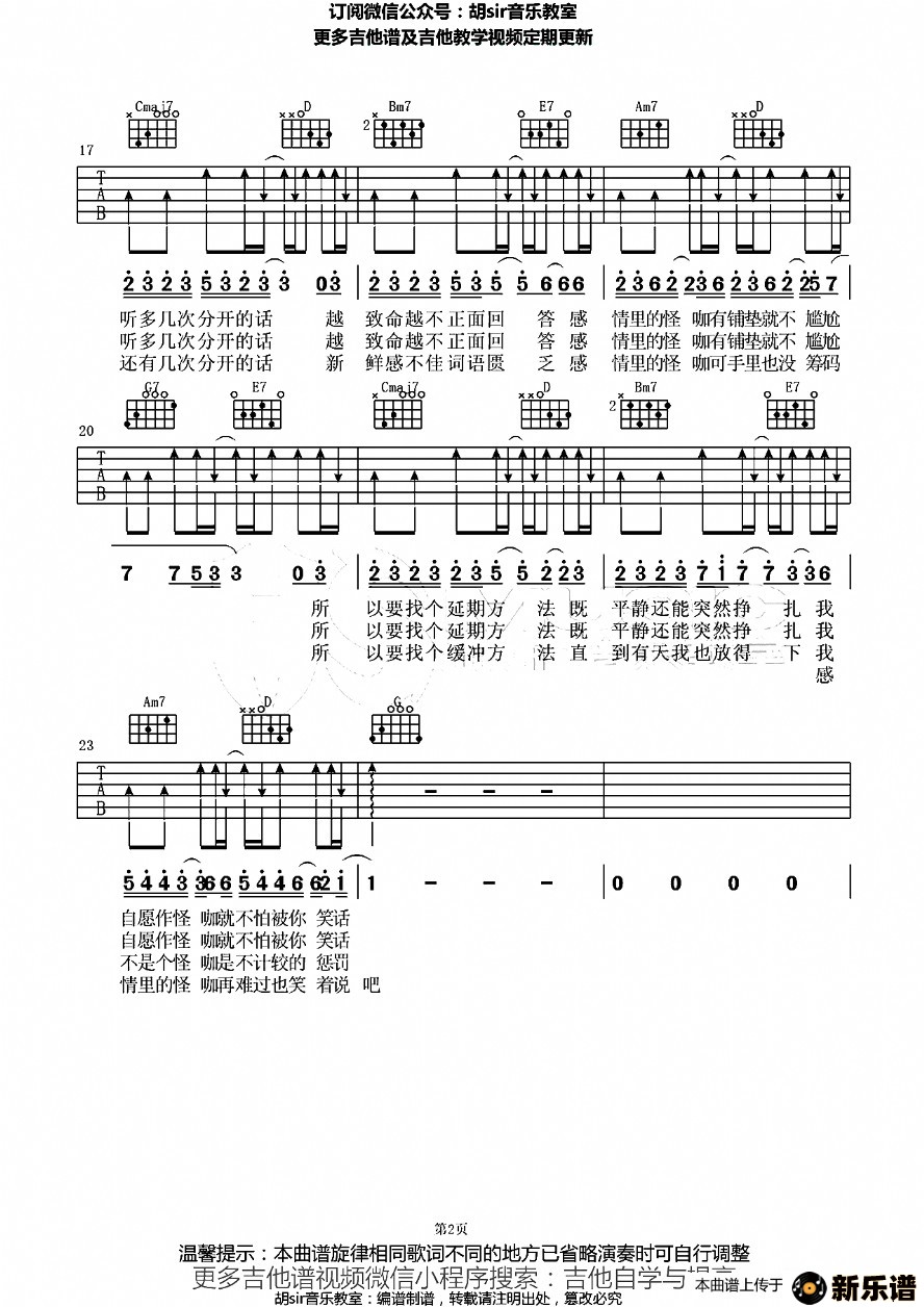 《怪咖》吉他谱 薛之谦