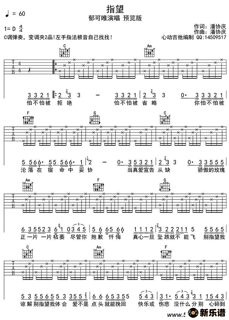 作词:潘协庆 作曲:潘协庆(吉他六线谱)