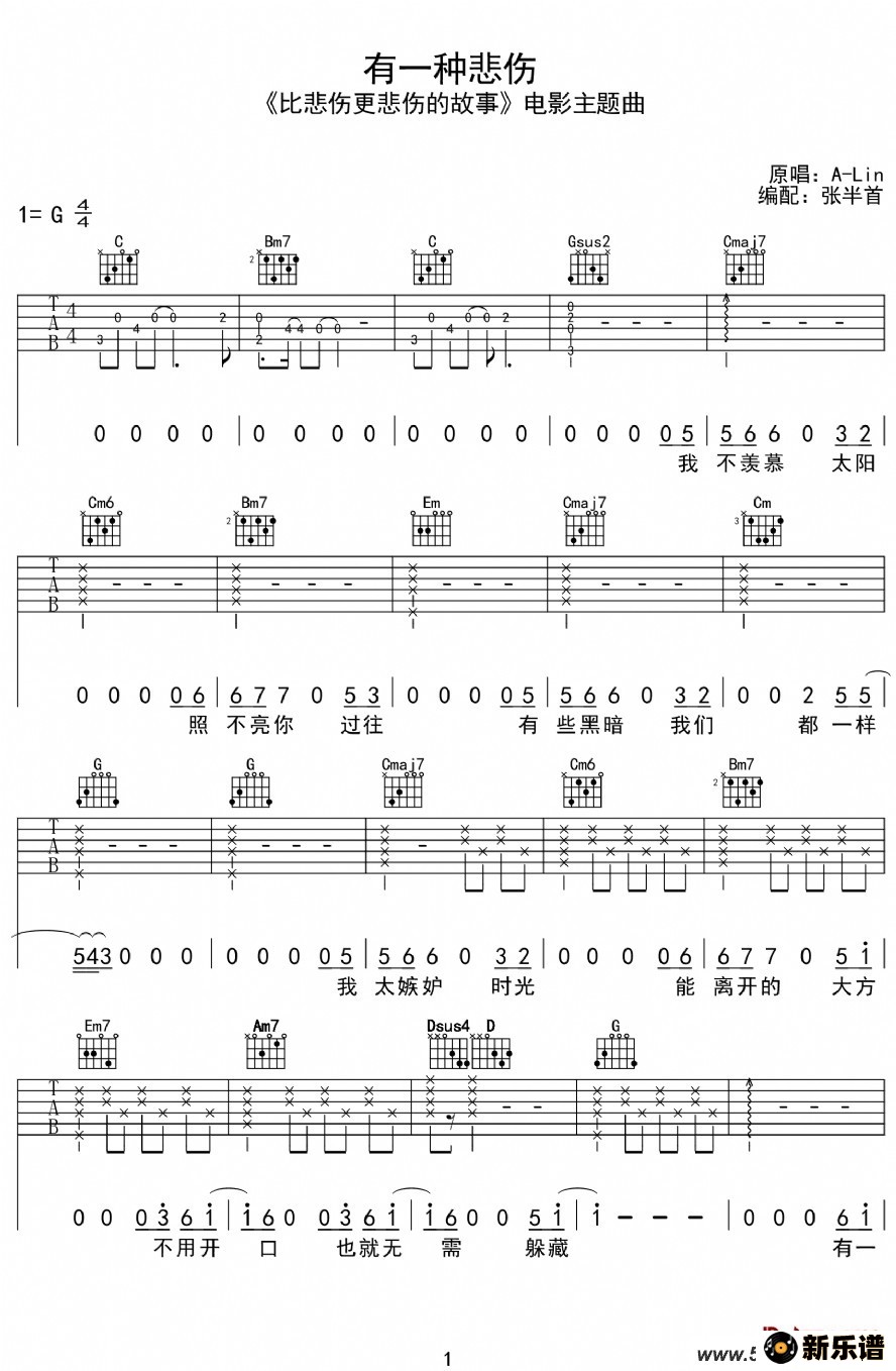 《有一种悲伤(《比悲伤更悲伤的故事》主题歌)》吉他谱 A-Lin