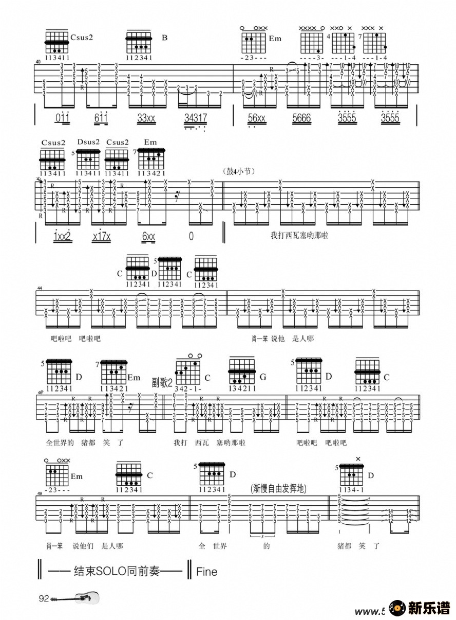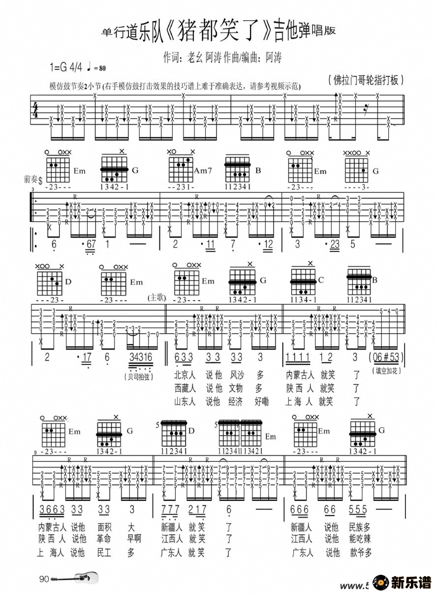 阿涛演唱的猪都笑了歌词,猪都笑了吉他谱.