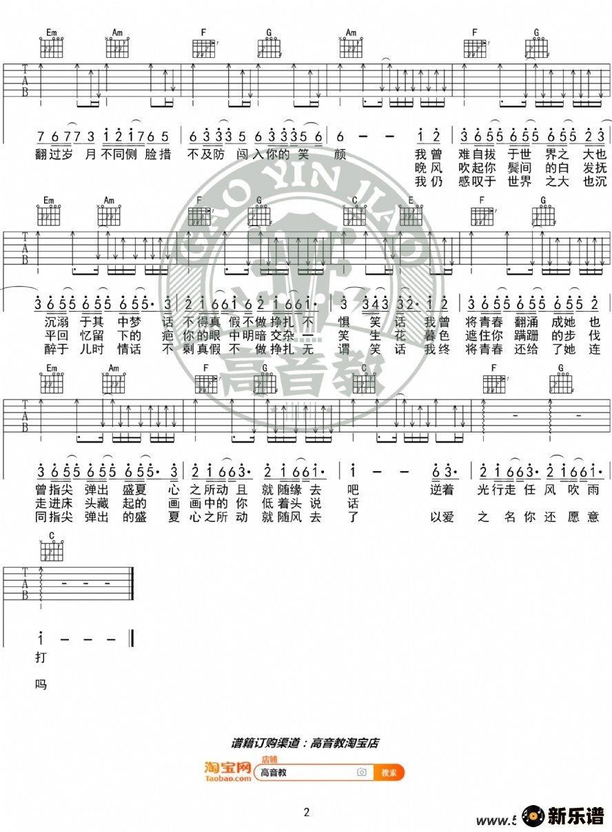 吴青峰演唱的起风了(吉他谱扫弦特别版)歌词,起风了(吉他谱扫弦特别版)吉他谱.