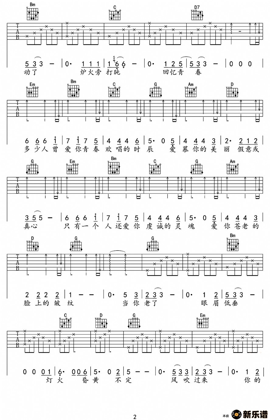 莫文蔚演唱的当你老了歌词,当你老了吉他谱.