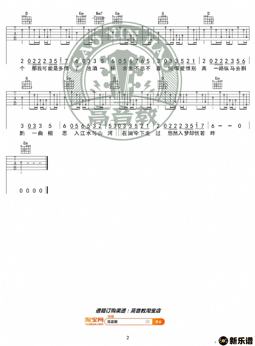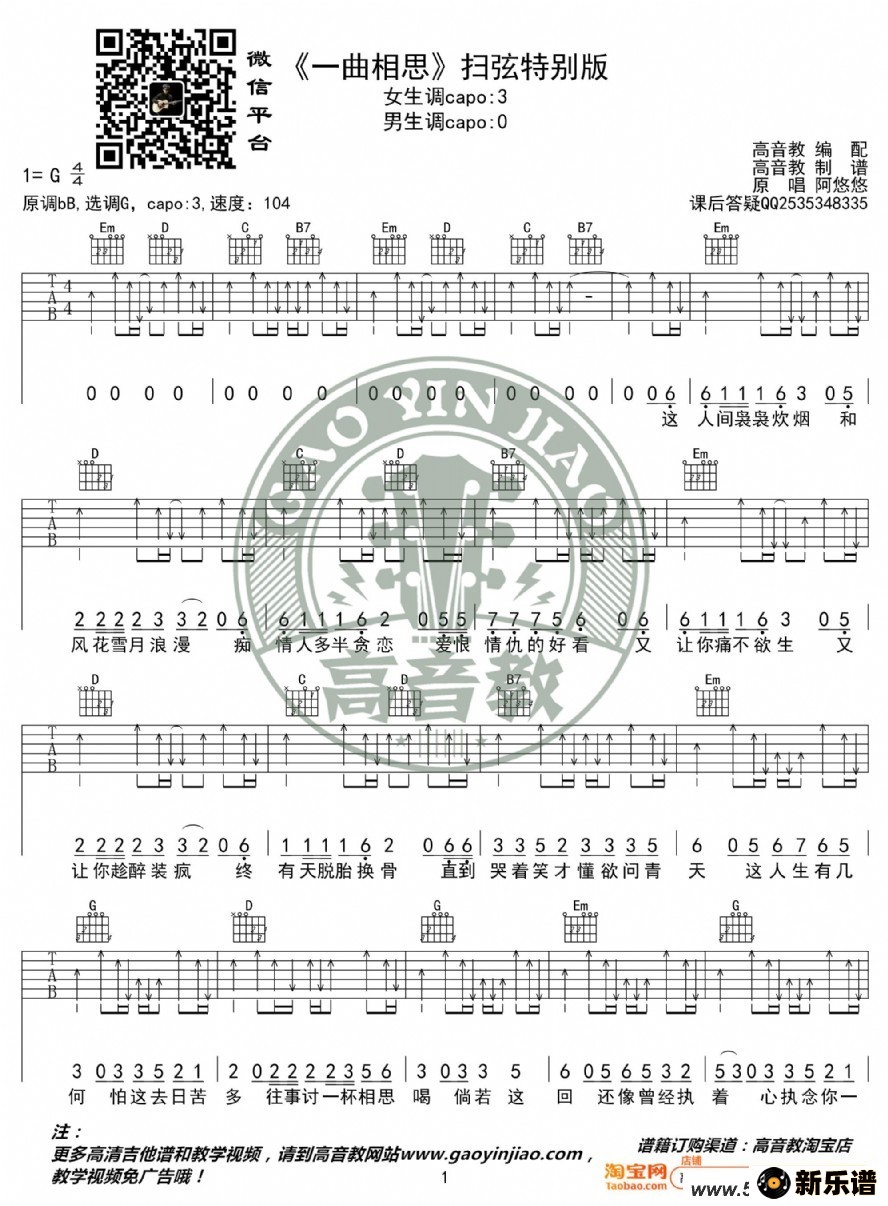 《阿悠悠《一曲相思》吉他谱扫弦特别版 高音教编配》吉他谱 -高音教制谱