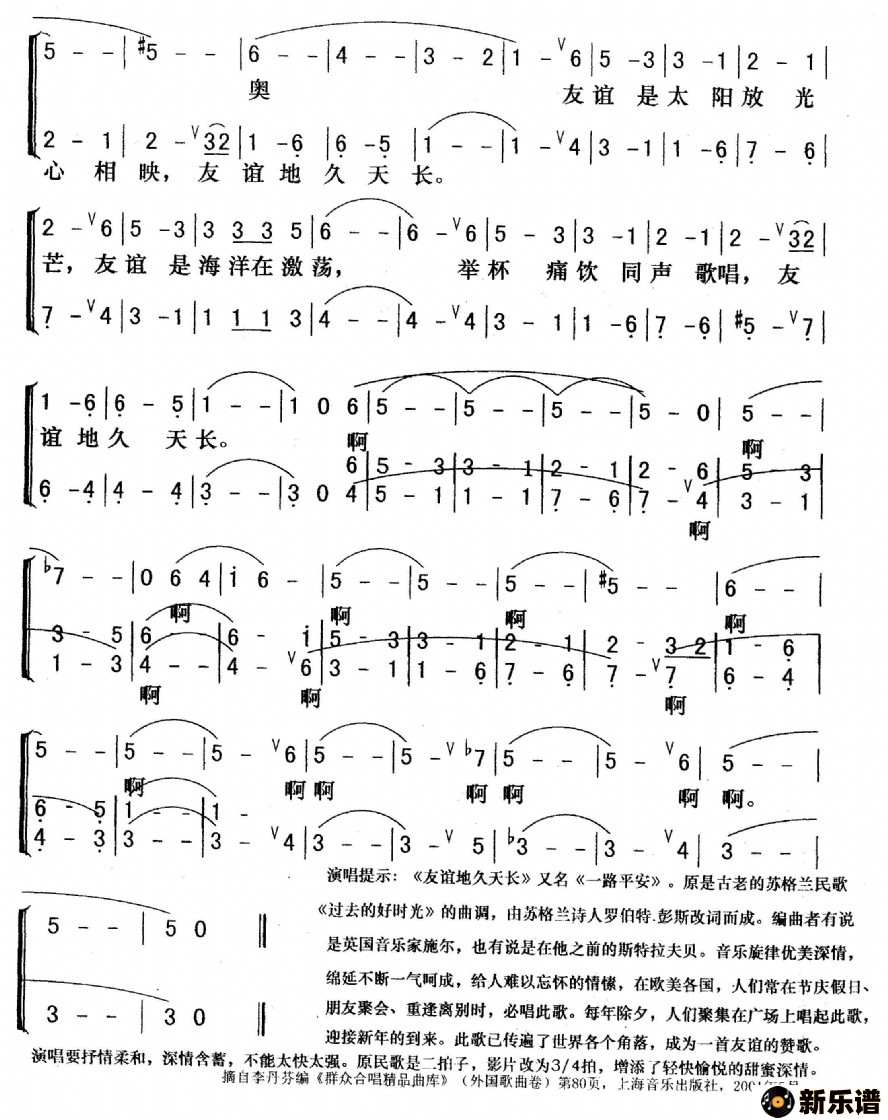[苏格兰]友谊地久天长(电影《魂断蓝桥》插曲、二声部)最新曲谱