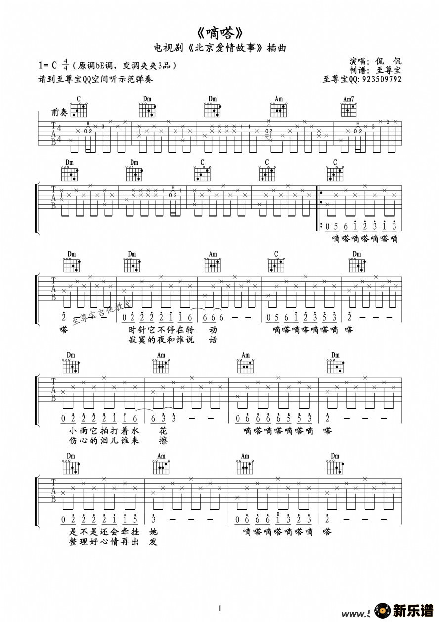 《嘀嗒(电视剧《北京爱情故事》插曲、吉他谱)》吉他谱 侃侃