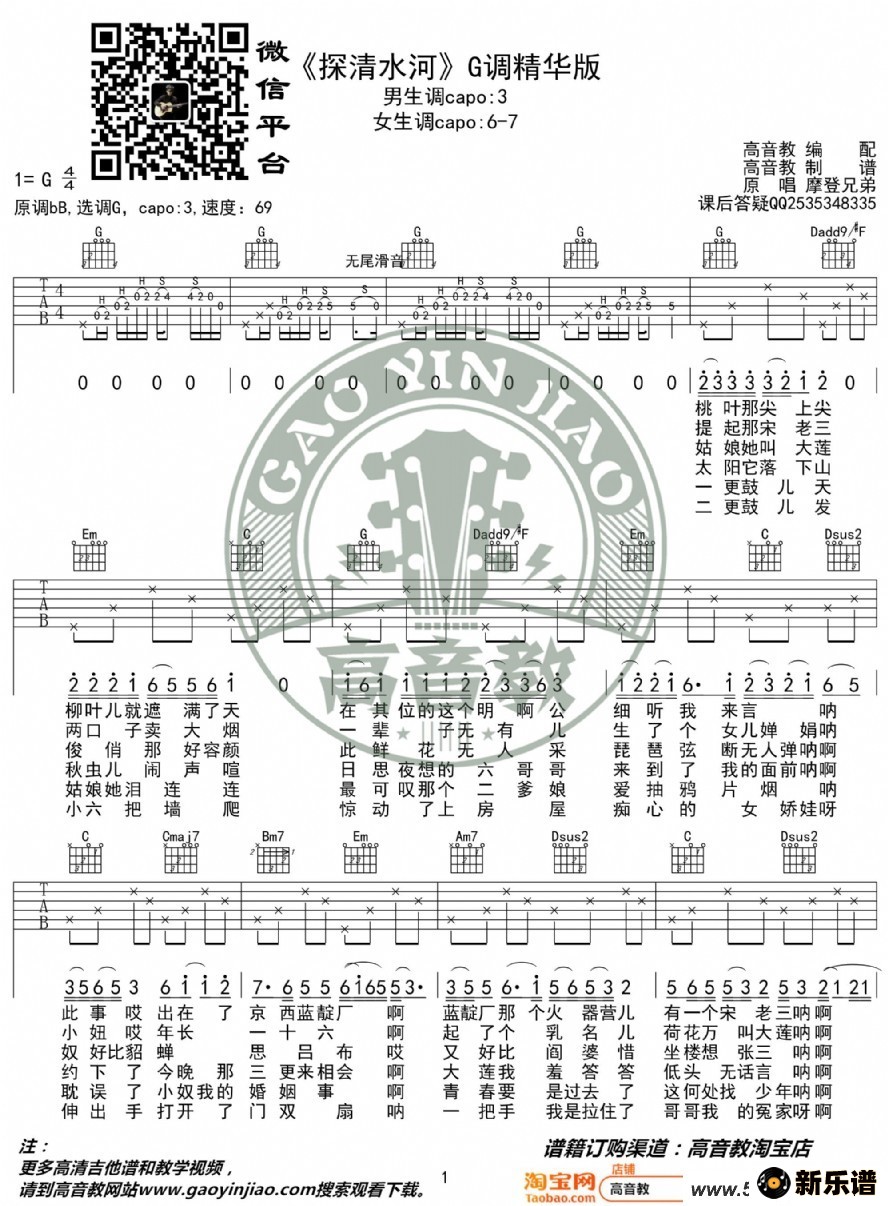 《探清水河》吉他谱g调精华版 摩登兄弟 高音教编配摩登兄弟 摩登兄弟演唱的《探清水河》吉他谱g调精华版 摩登兄弟 高音教编配歌词,《探清水河》吉他谱g调精华版 摩登兄弟 高音教编配吉他谱. 此吉他谱由新乐谱会员 高音教 上传