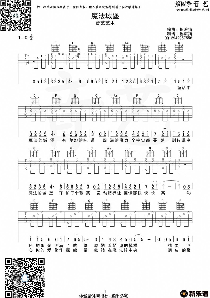 演唱的魔法城堡歌词,魔法城堡吉他谱.