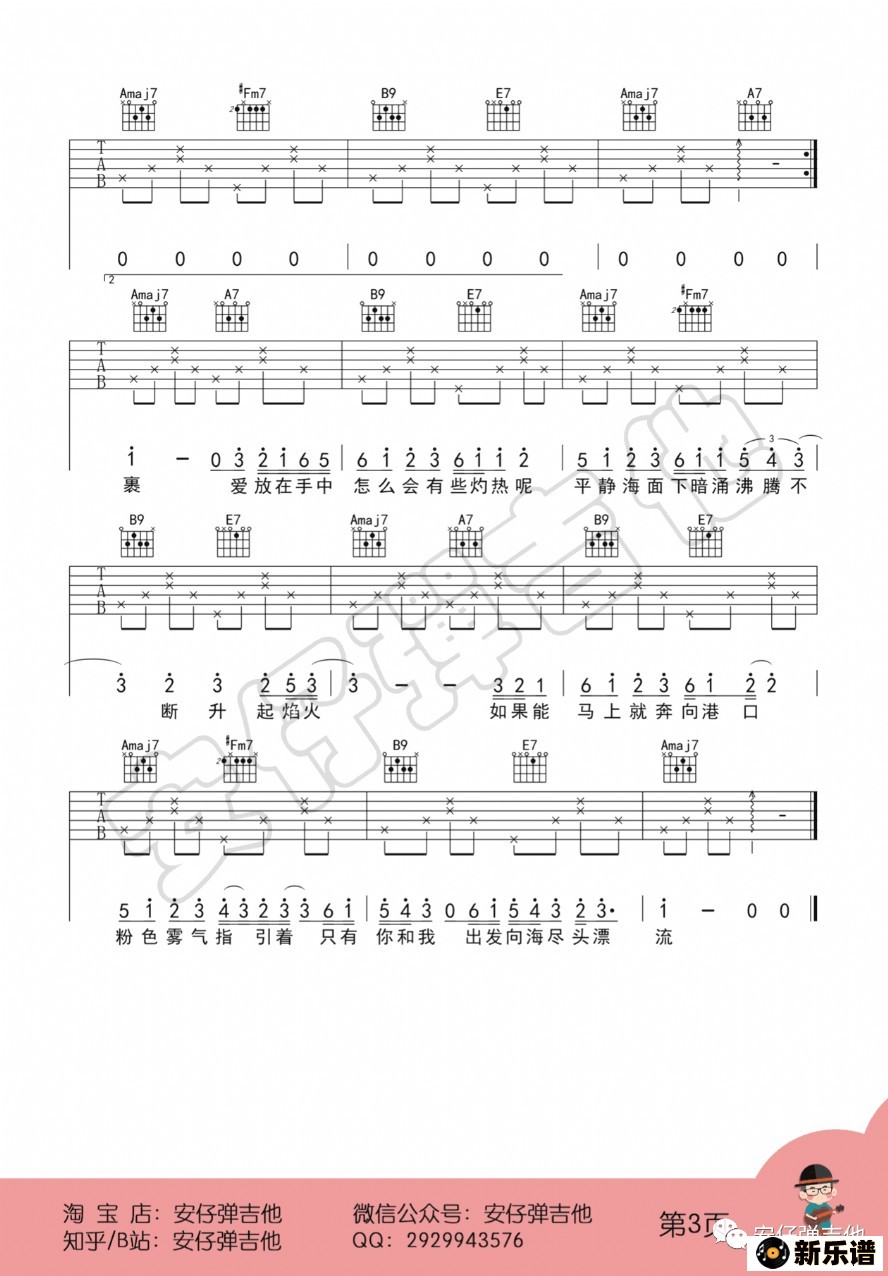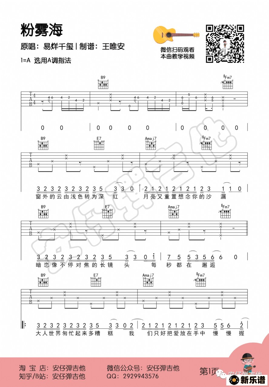 易烊千玺演唱的粉雾海歌词,粉雾海吉他谱.