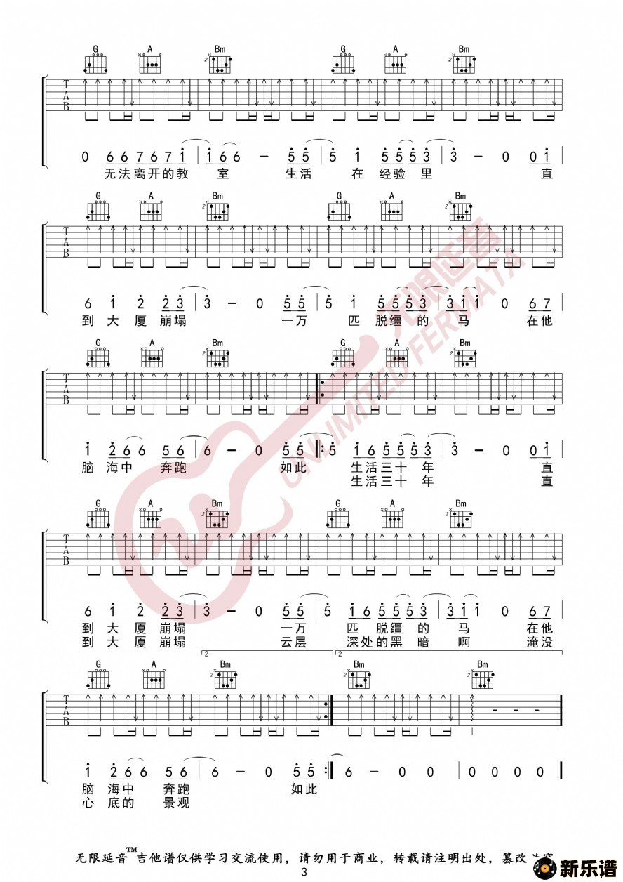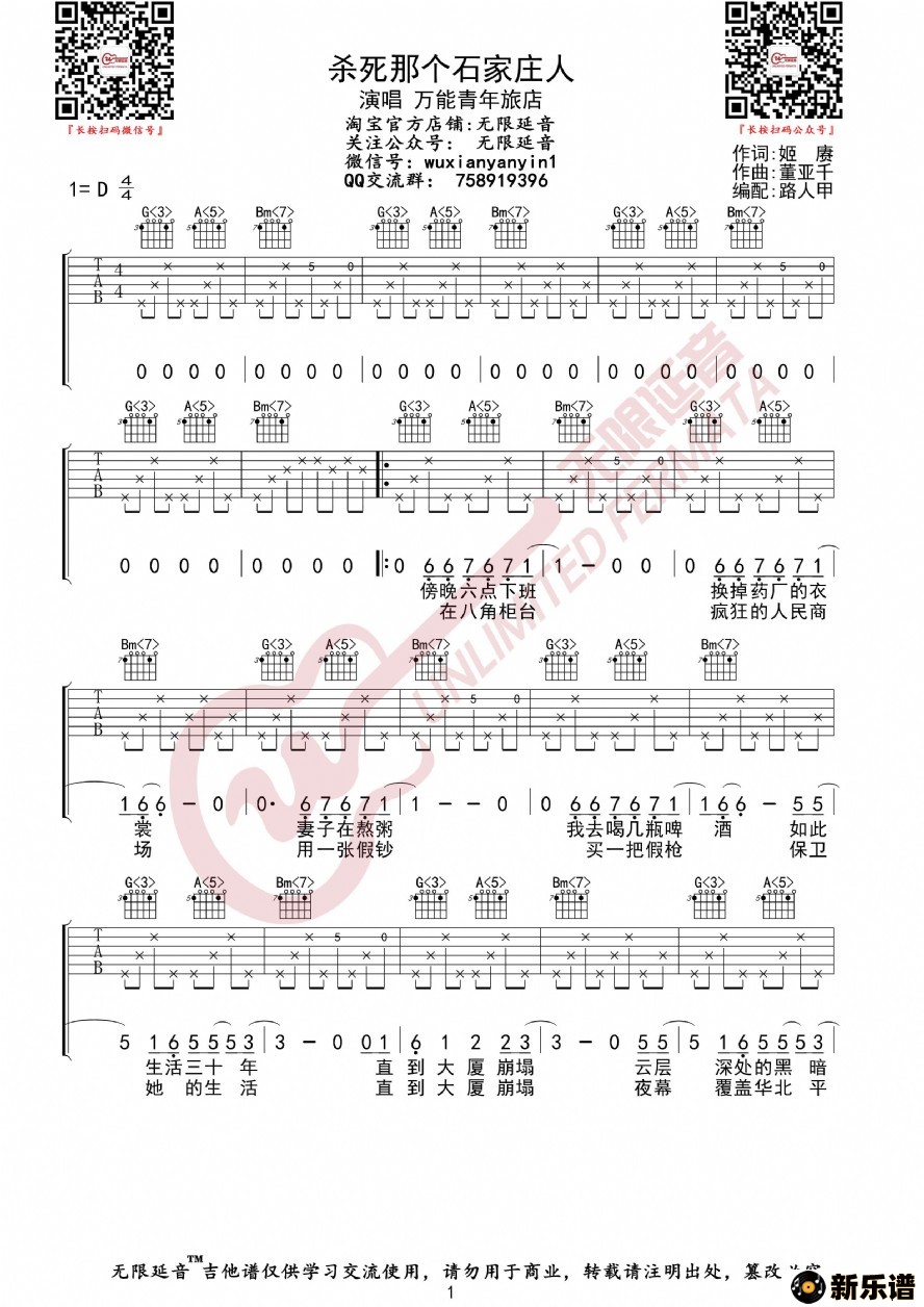 《万能青年旅店 杀死那个石家庄人 吉他谱》吉他谱 万能青年旅店-无限延音制谱