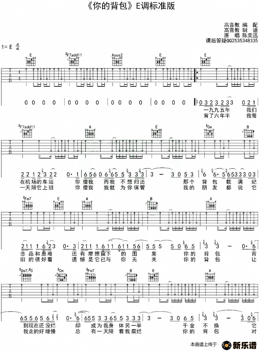 陈奕迅演唱的你的背包歌词,你的背包吉他谱.