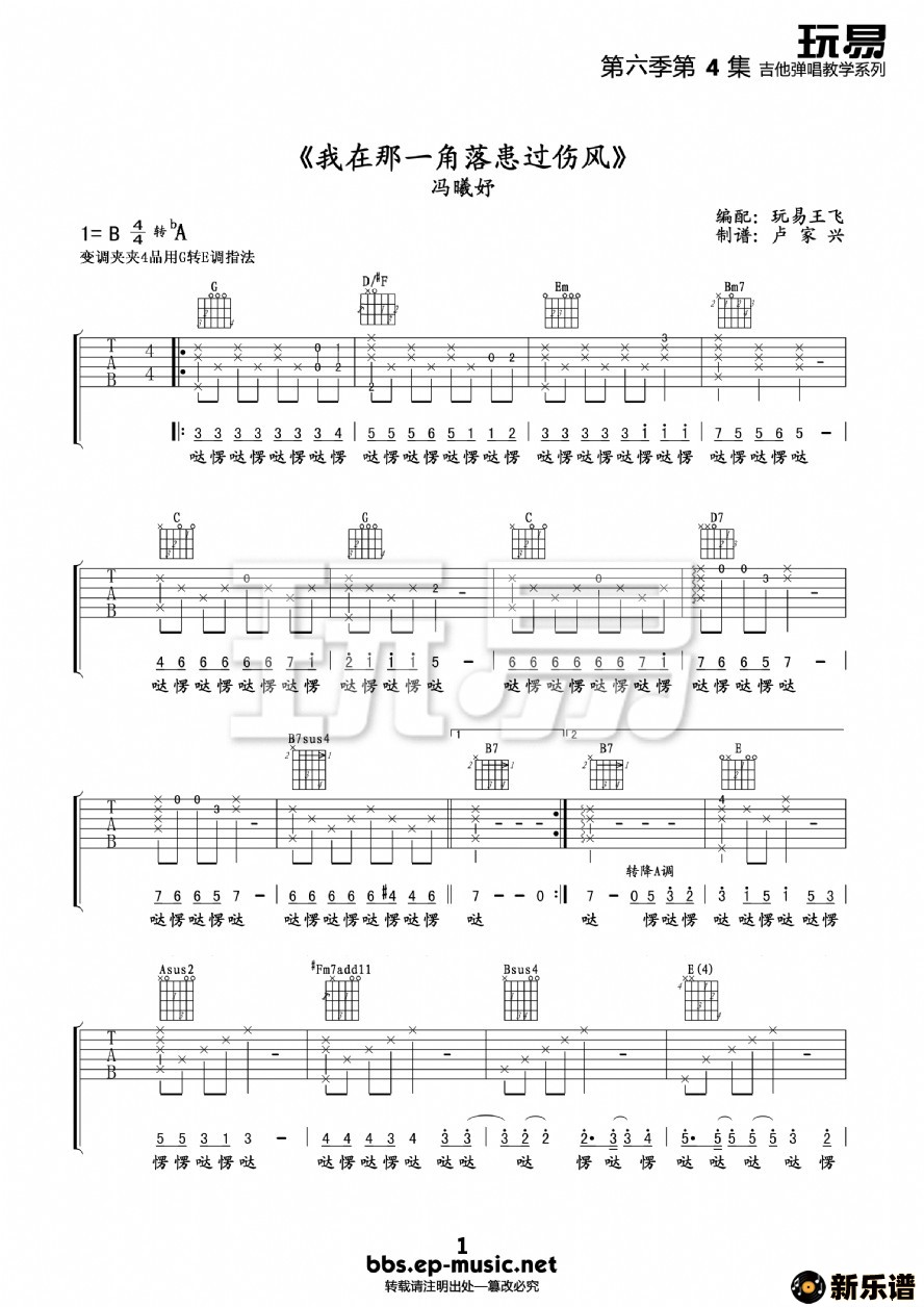 > 我在那一角落患过伤风 吉他谱 六线谱吉他谱