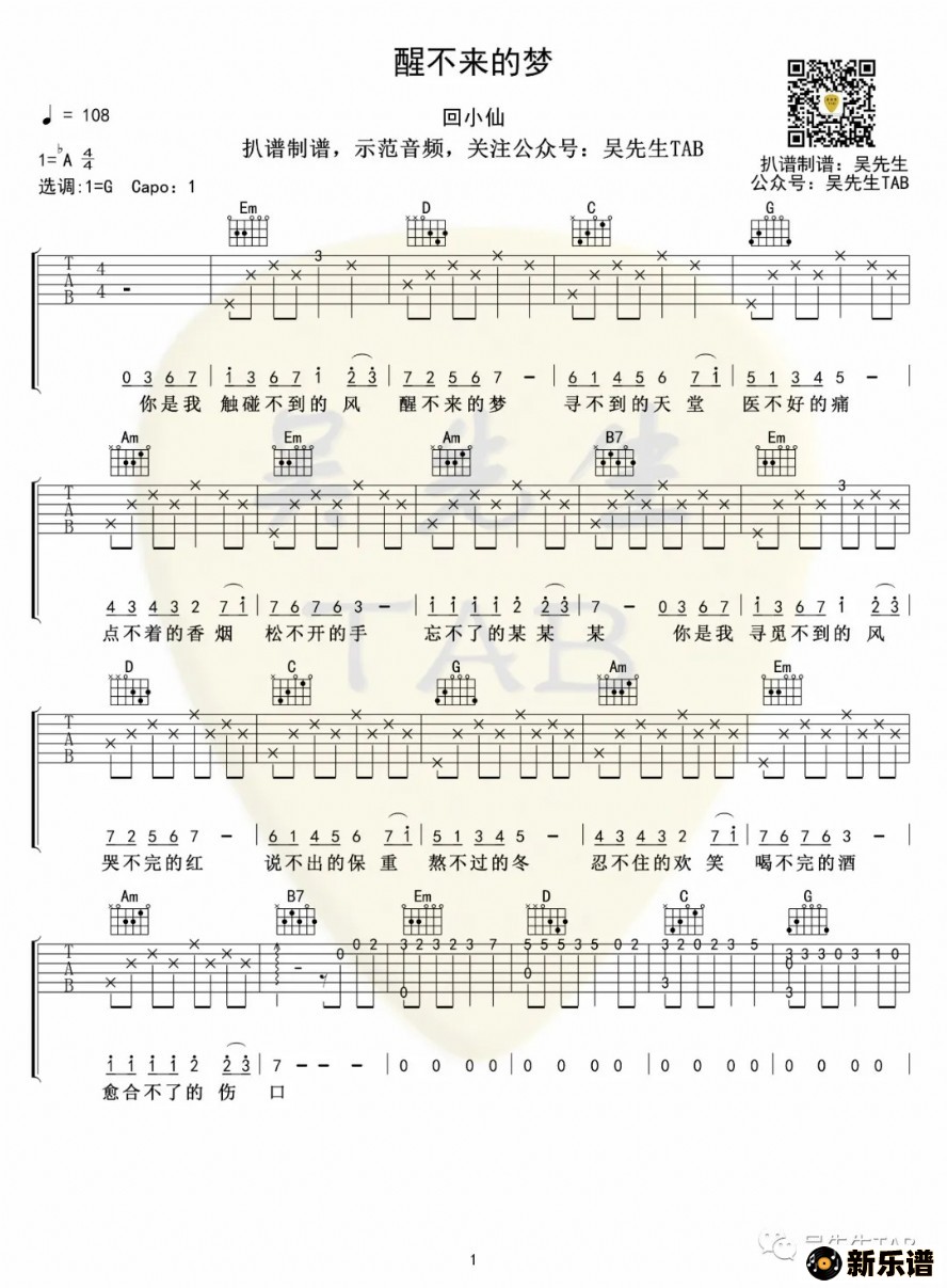 回小仙演唱的醒不来的梦歌词,醒不来的梦吉他谱.