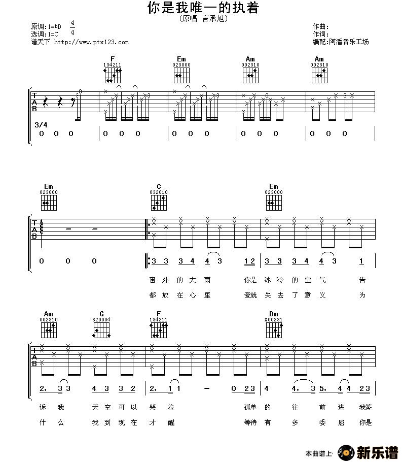 言承旭演唱的你是我唯一的执着歌词,你是我唯一的执着吉他谱.