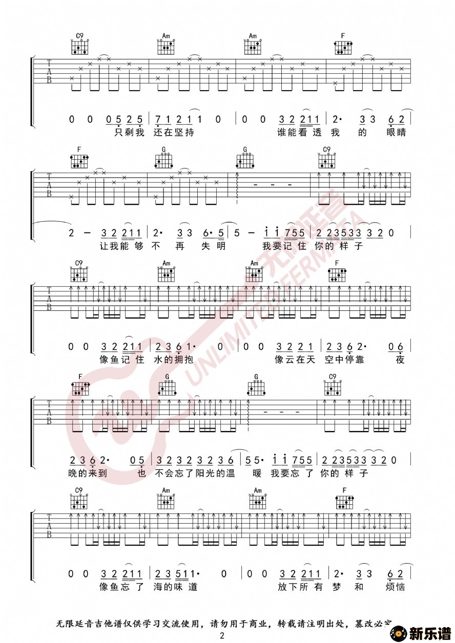 《像鱼》吉他谱 王贰浪-无限延音制谱
