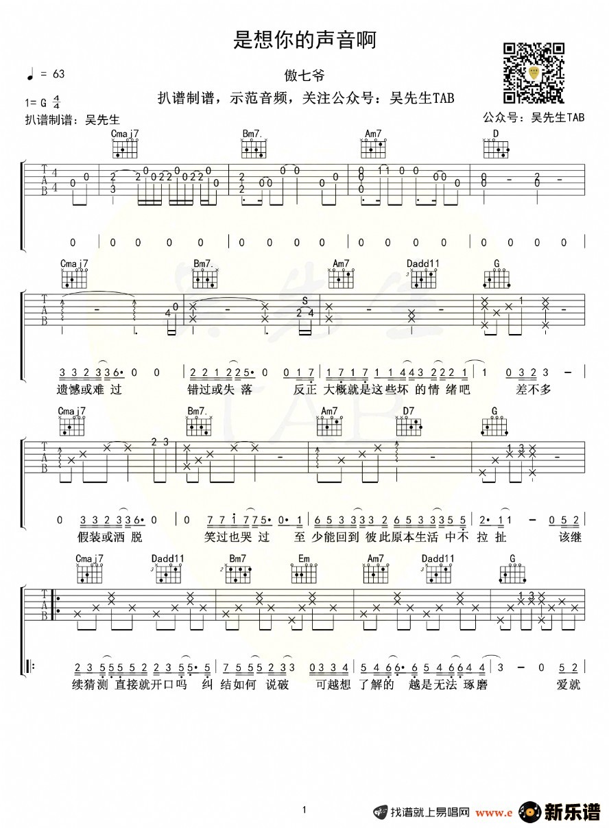 傲七爷演唱的是想你的声音啊歌词,是想你的声音啊吉他谱.