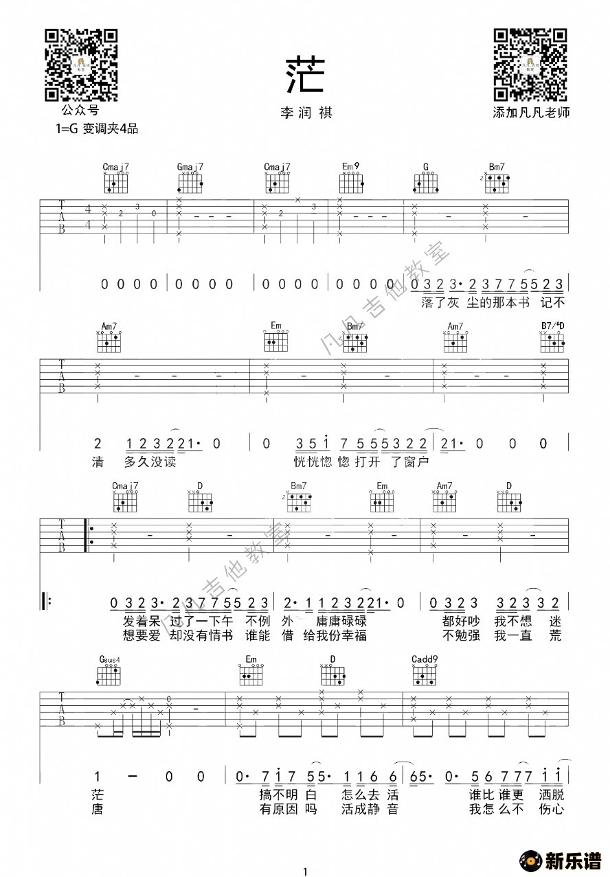 《茫 [弹唱 简单版]》吉他谱 李润祺