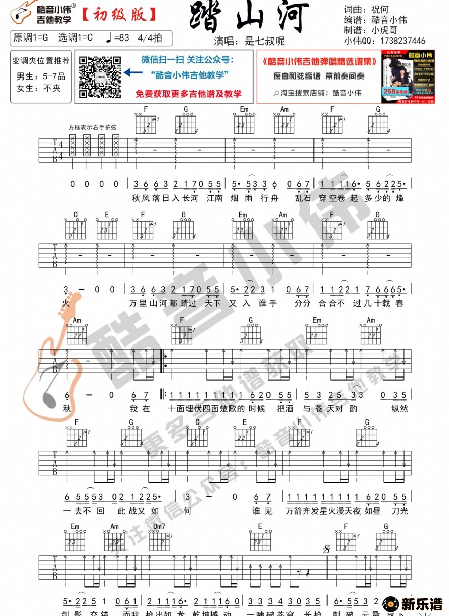 《《踏山河》吉他谱初级版》吉他谱 是七叔呢