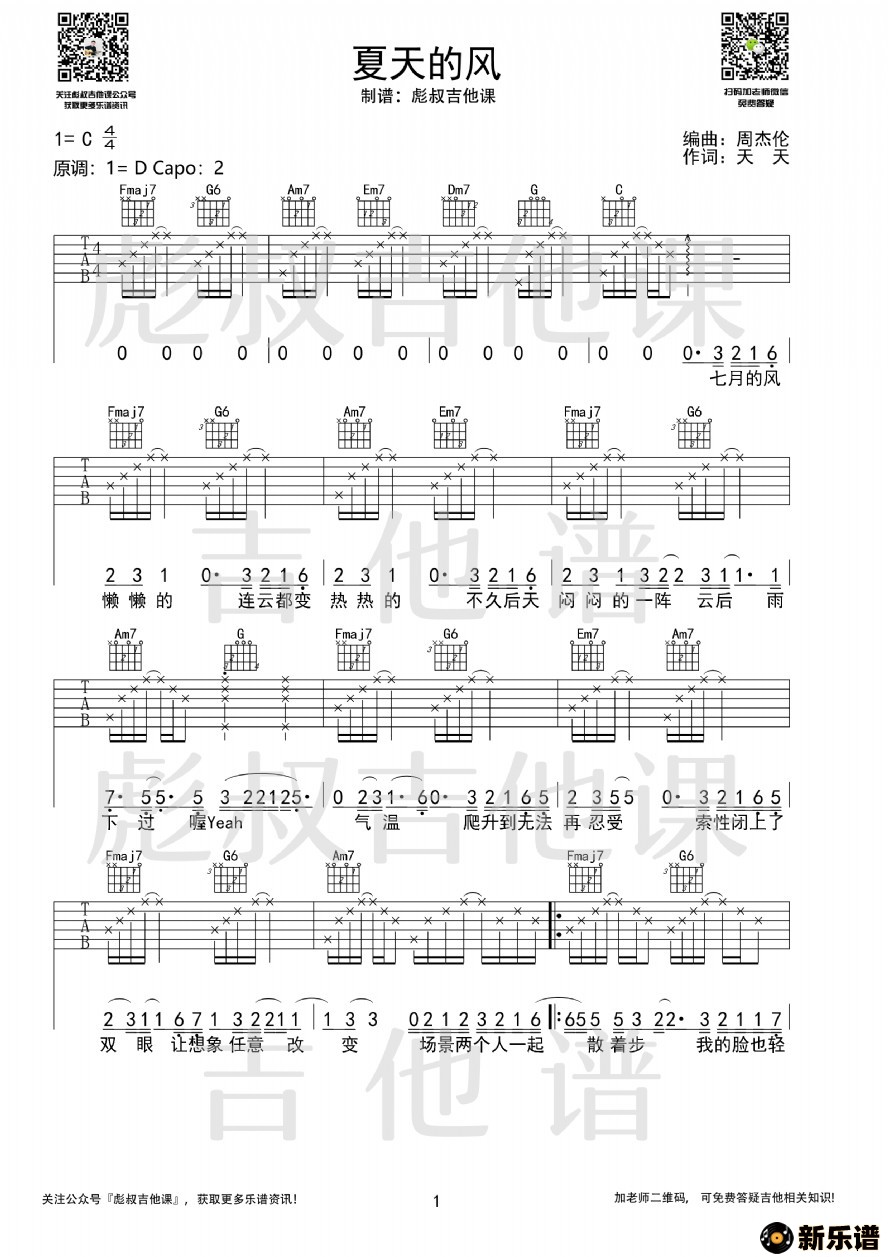 作词:周杰伦 (彪叔吉他课制谱)