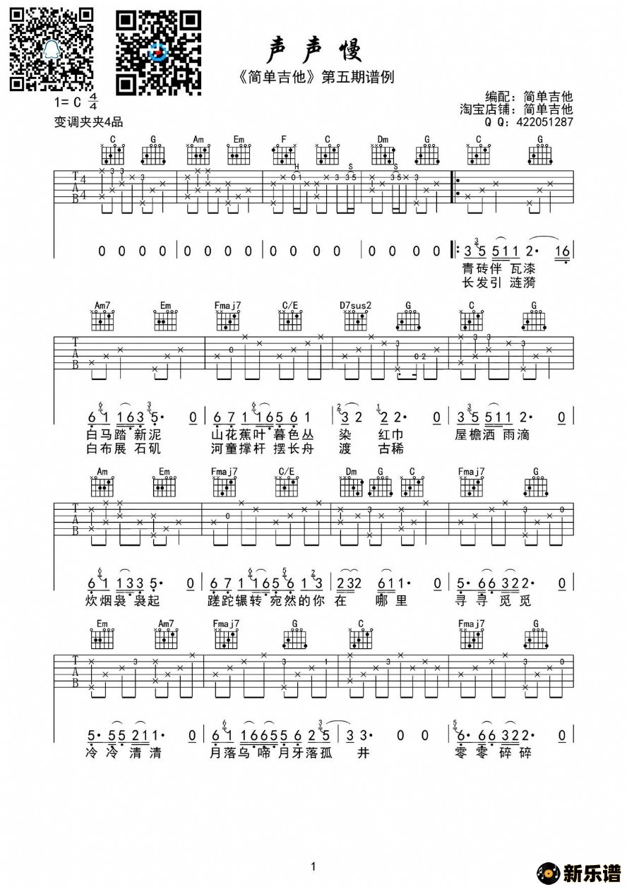 崔开潮演唱的声声慢歌词,声声慢吉他谱.