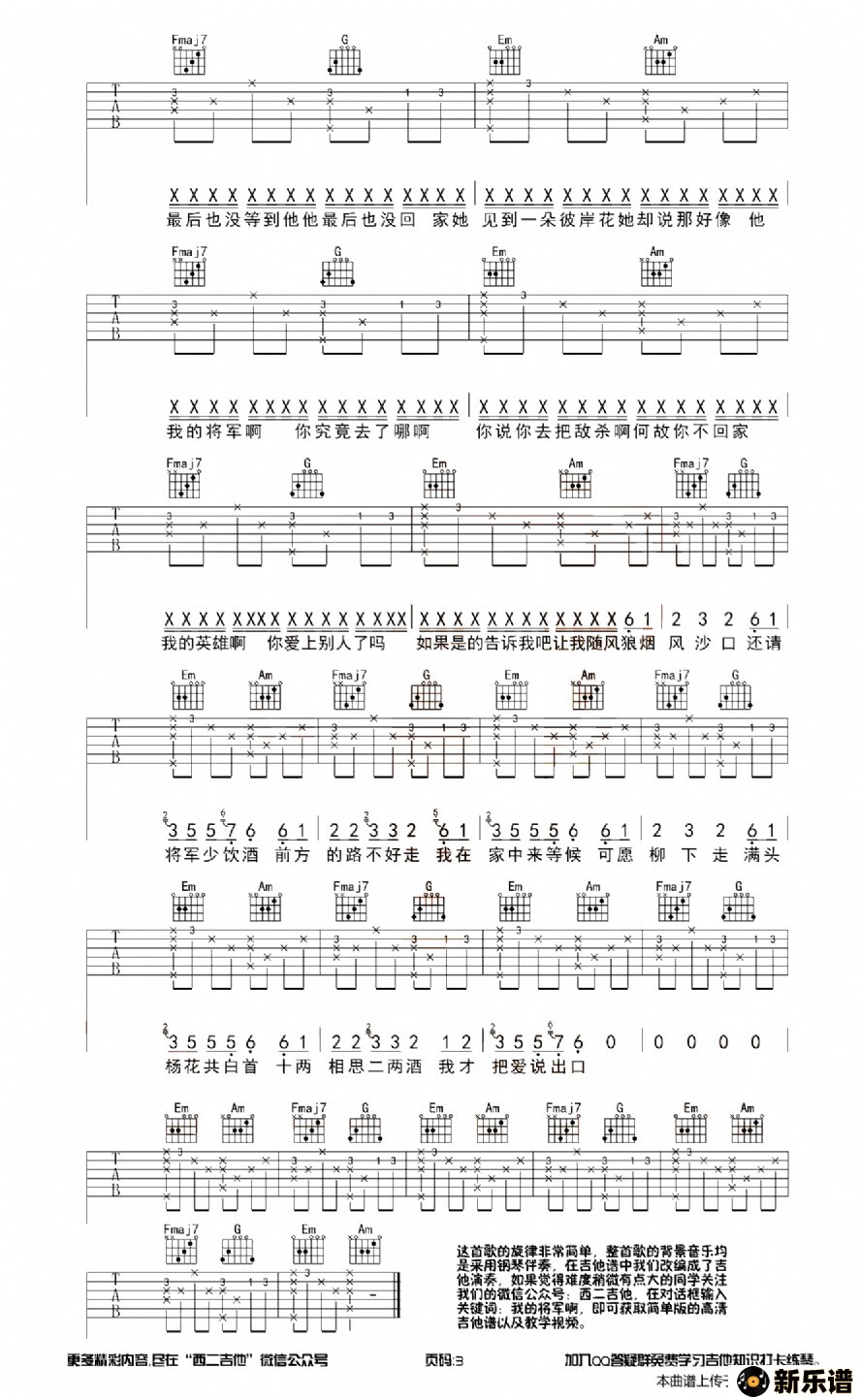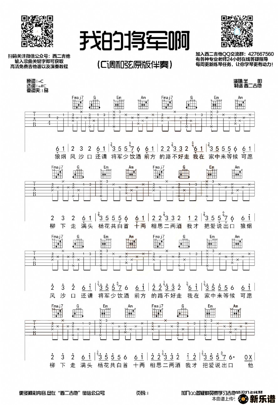 半阳演唱的我的将军啊歌词,我的将军啊吉他谱.