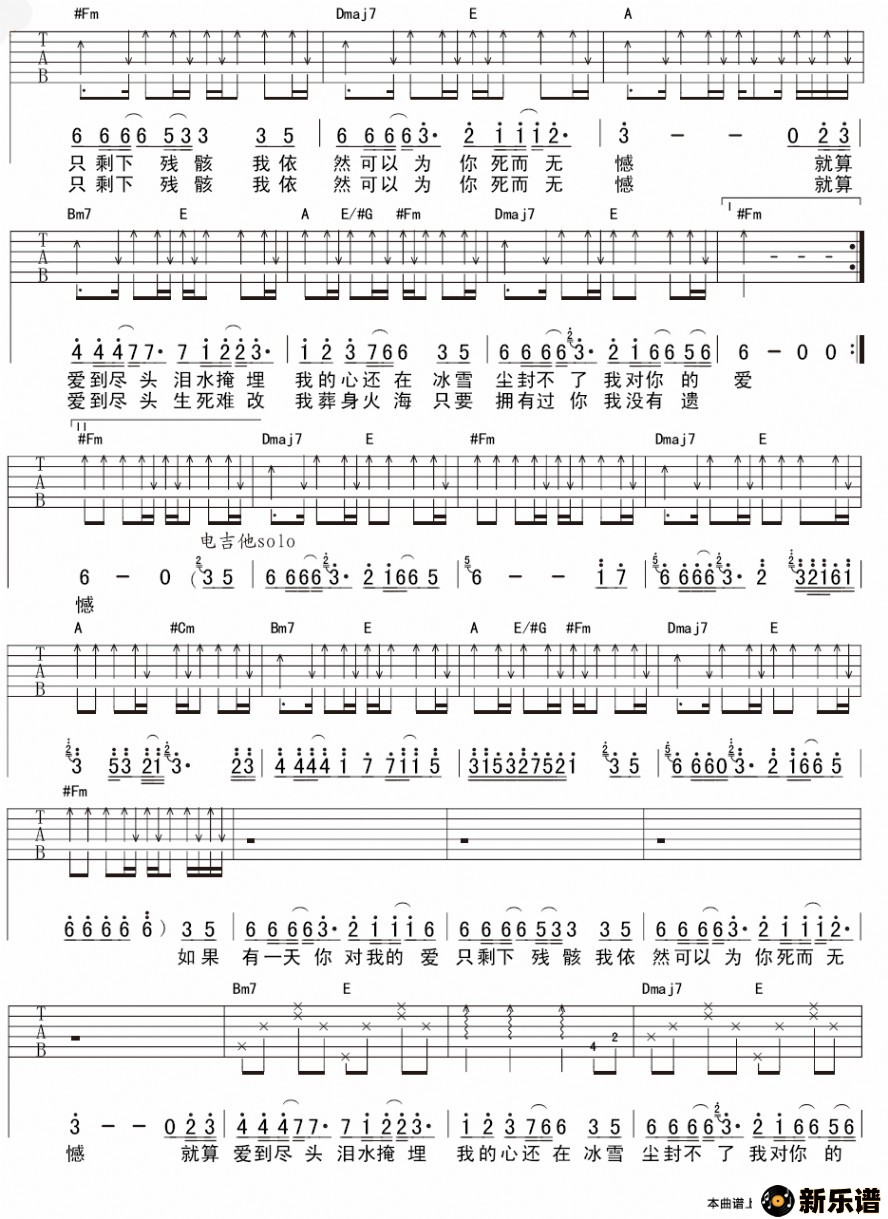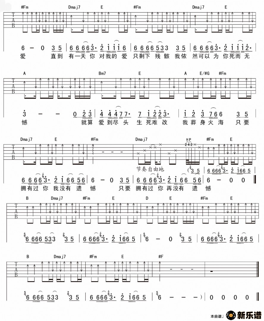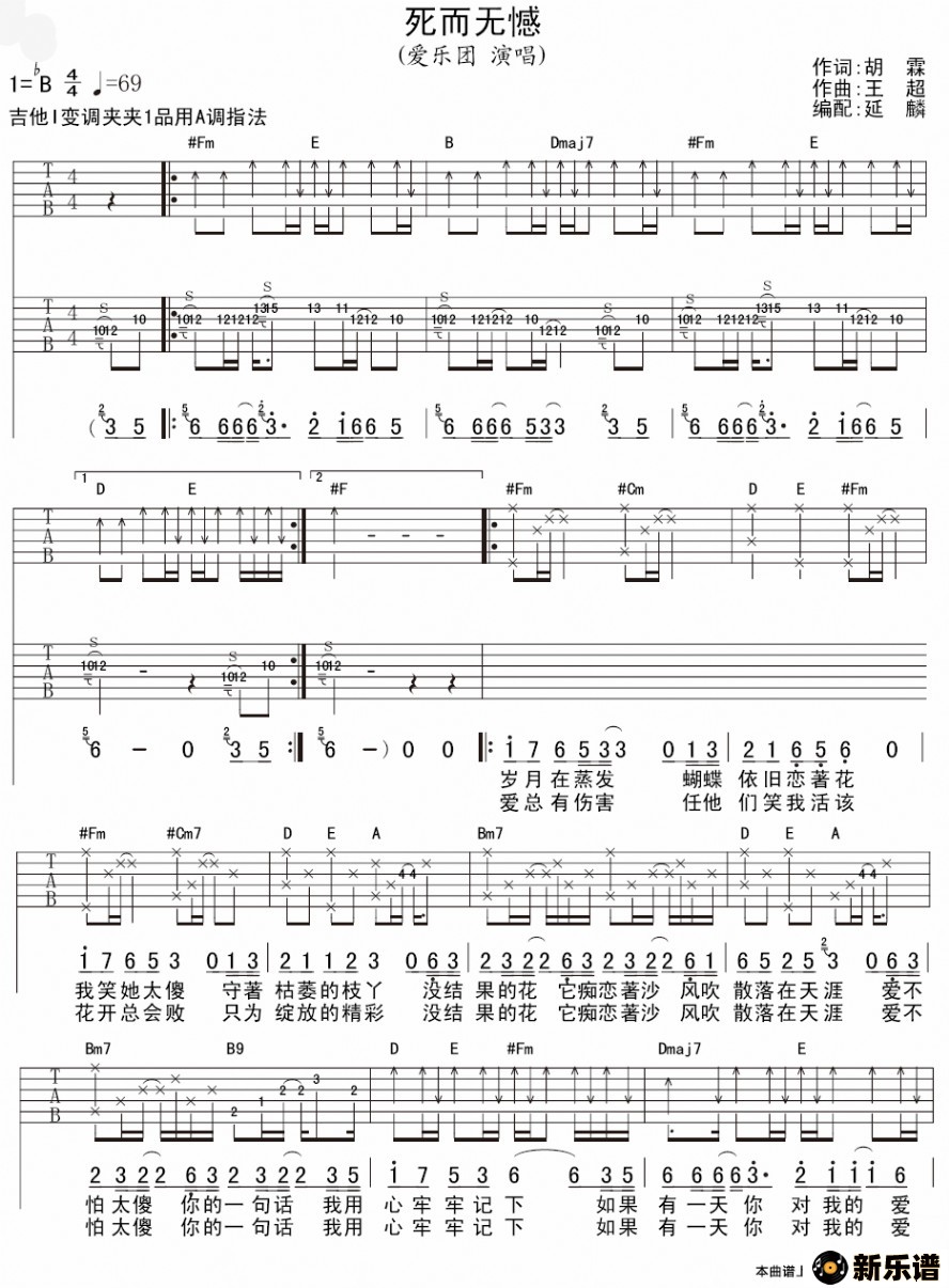 爱乐团演唱的死而无憾歌词,死而无憾吉他谱.