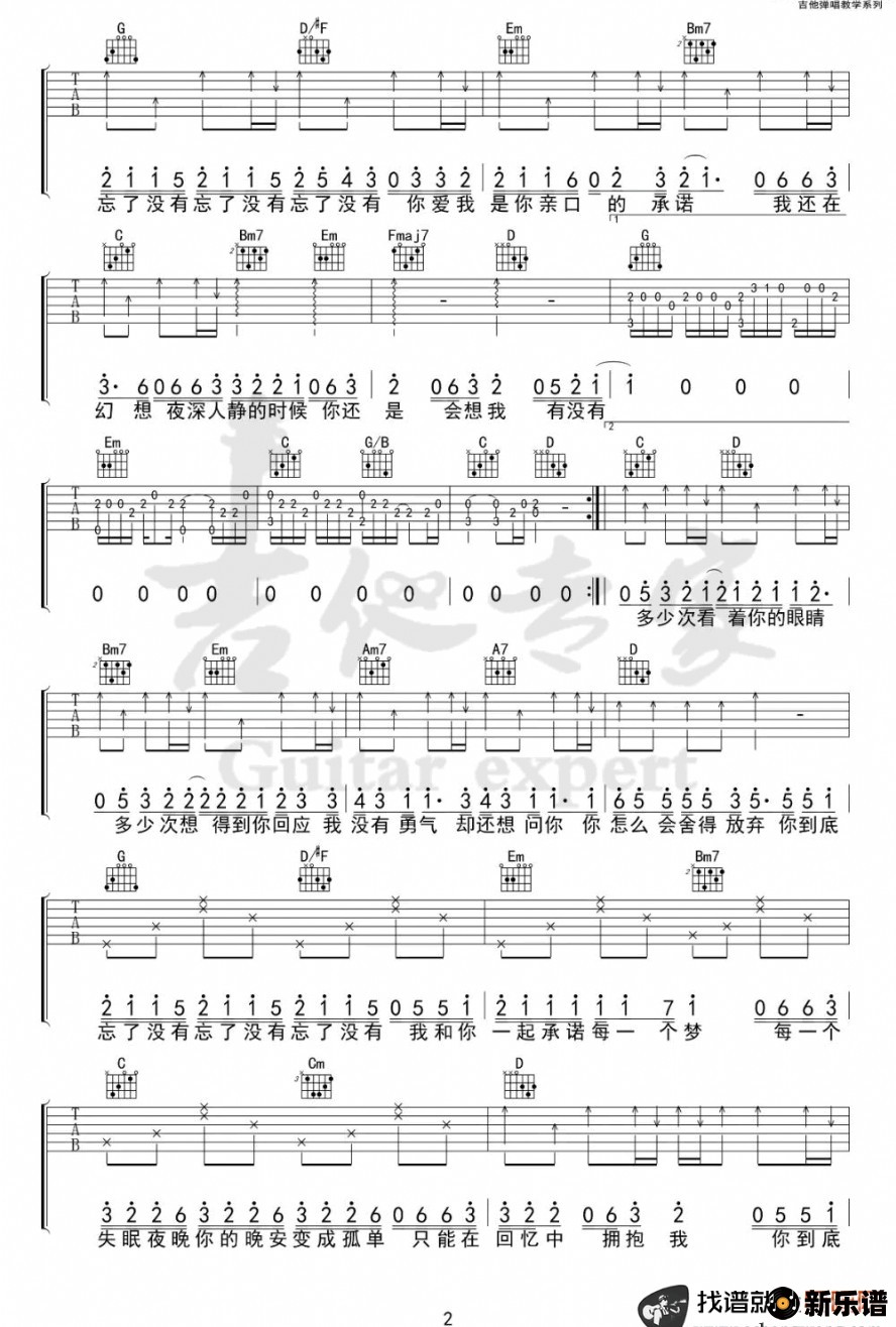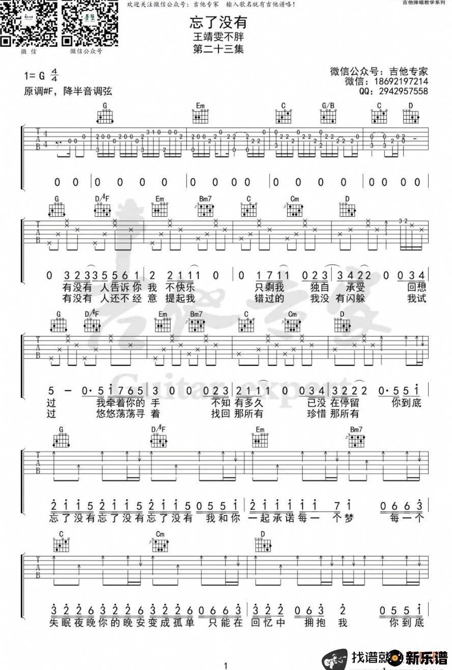 《忘了没有》吉他谱 王靖雯不胖-吉他专家制谱
