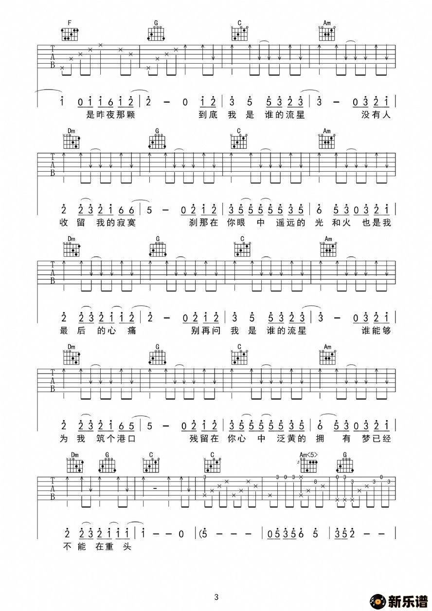 吴奇隆演唱的流星歌词,流星吉他谱.