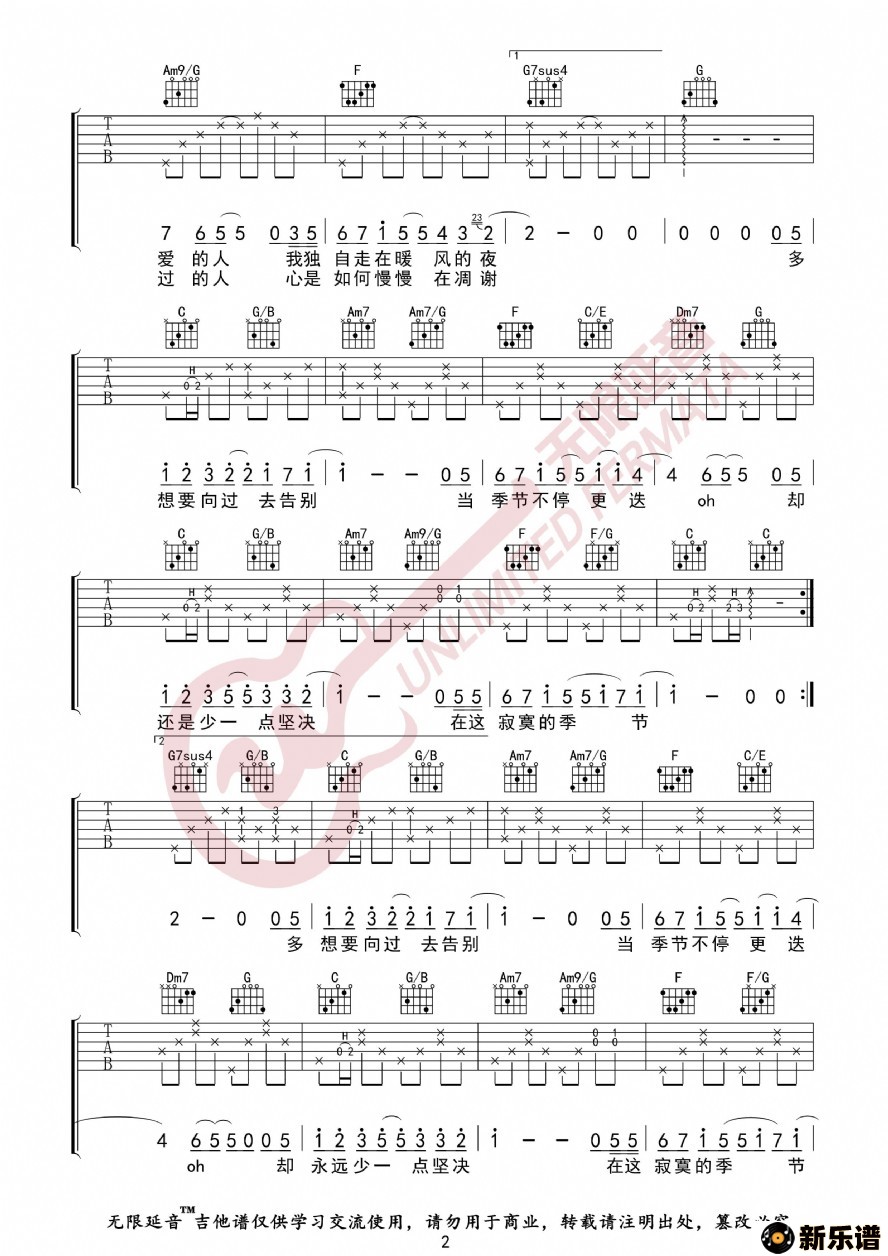 《陶喆 寂寞的季节 吉他谱》吉他谱 陶喆-无限延音制谱
