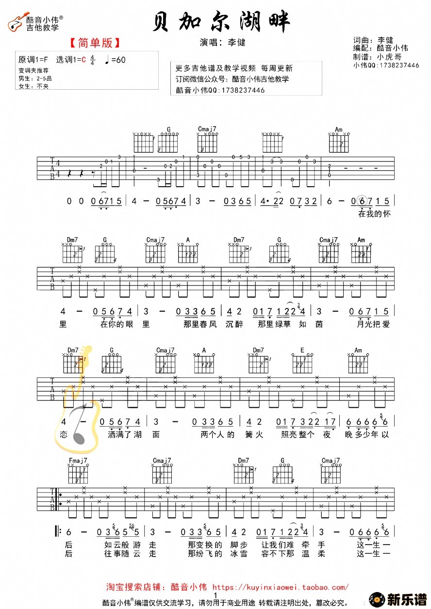 贝加尔湖畔吉他谱