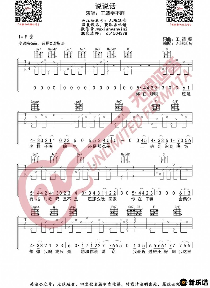 王靖雯不胖演唱的说说话歌词,说说话吉他谱.