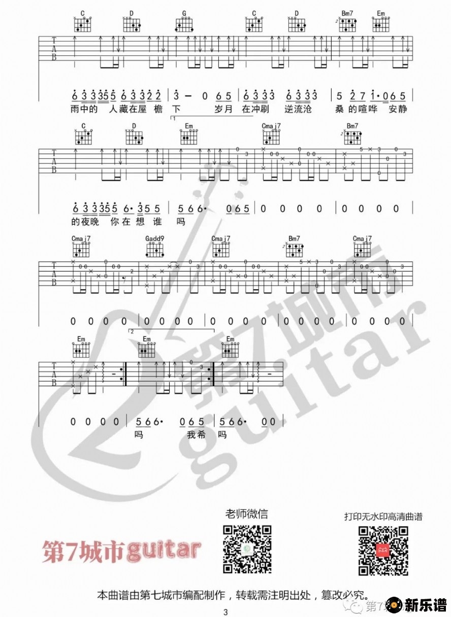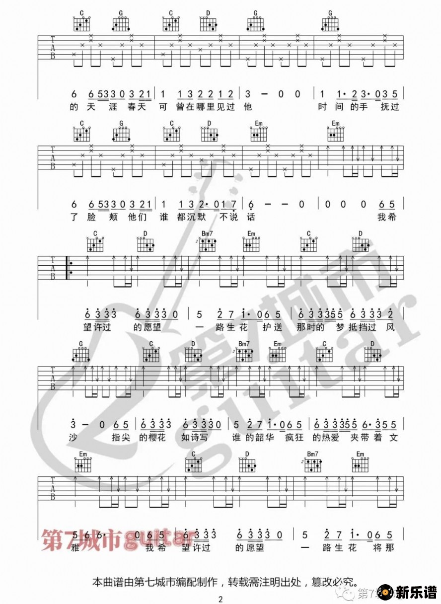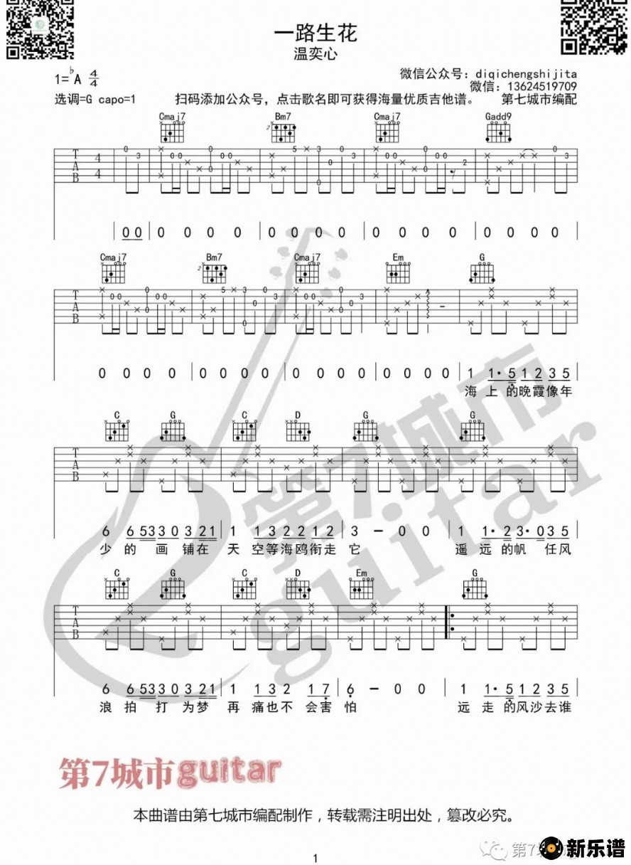 《一路生花》吉他谱 温奕心-第七城市制谱