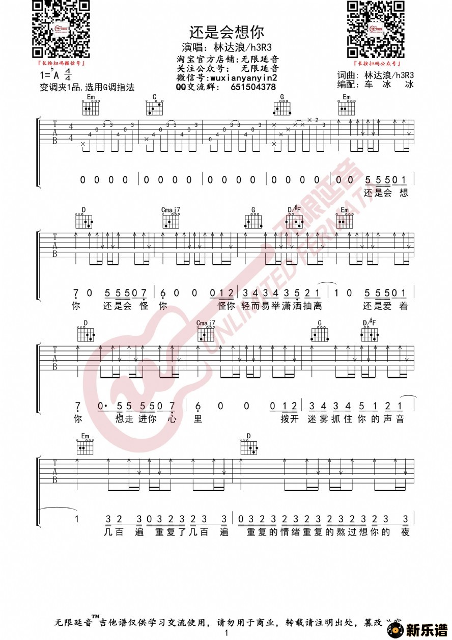 《林达浪 h3r3 还是会想你 吉他谱》吉他谱 林达浪/h3r3-无限延音制谱
