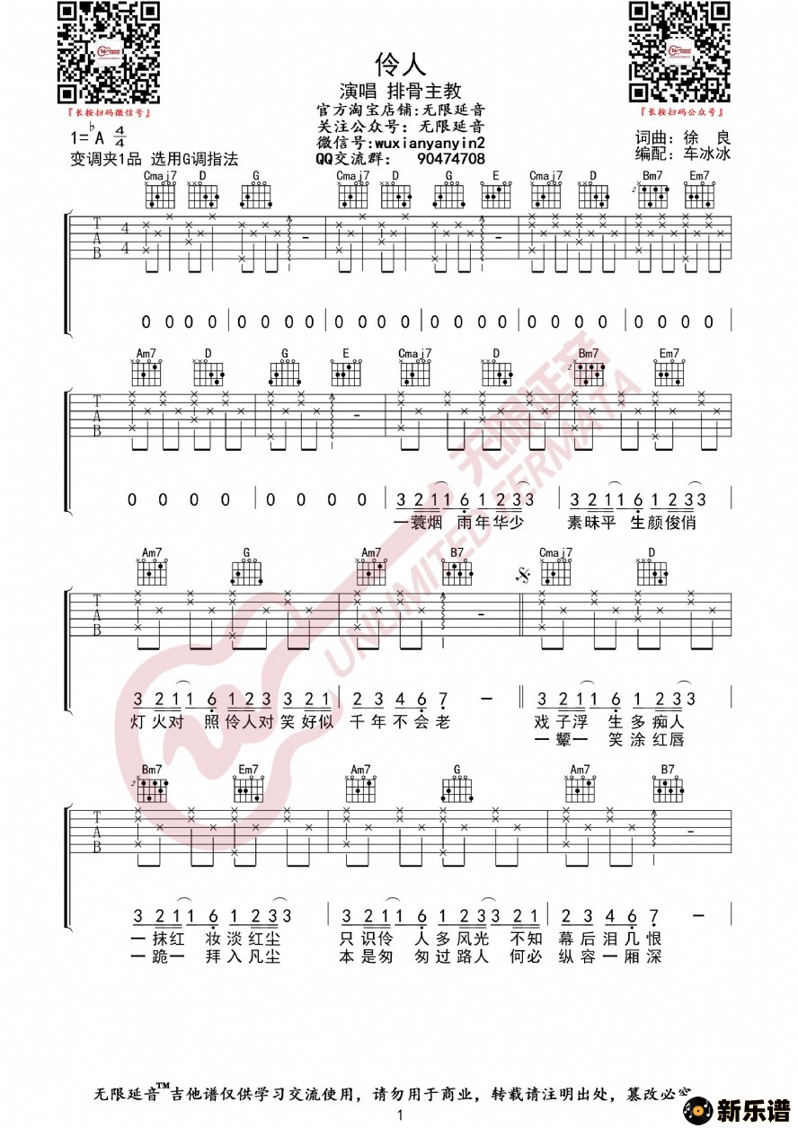 《排骨教主 伶人 吉他谱》吉他谱 排骨教主-无限延音制谱