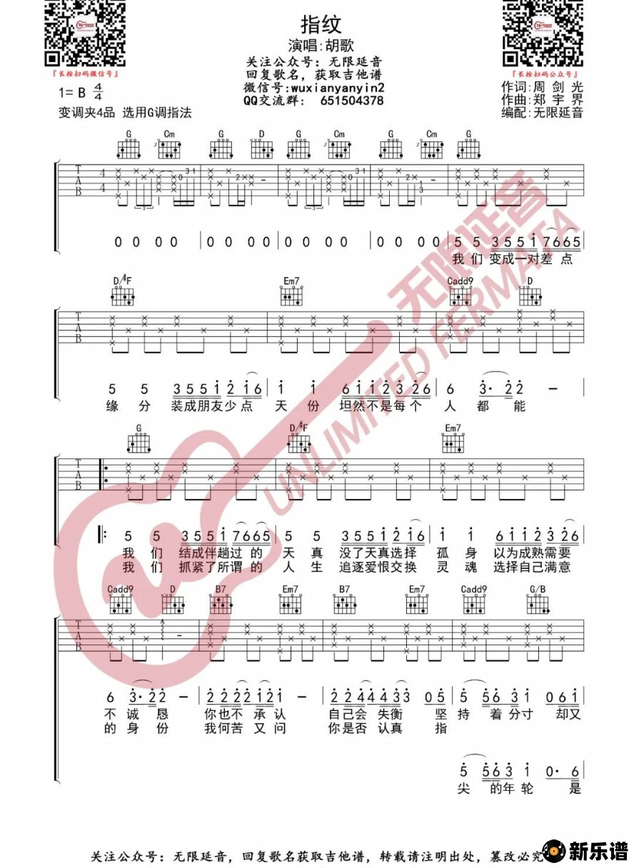 胡歌演唱的指纹歌词,指纹吉他谱.
