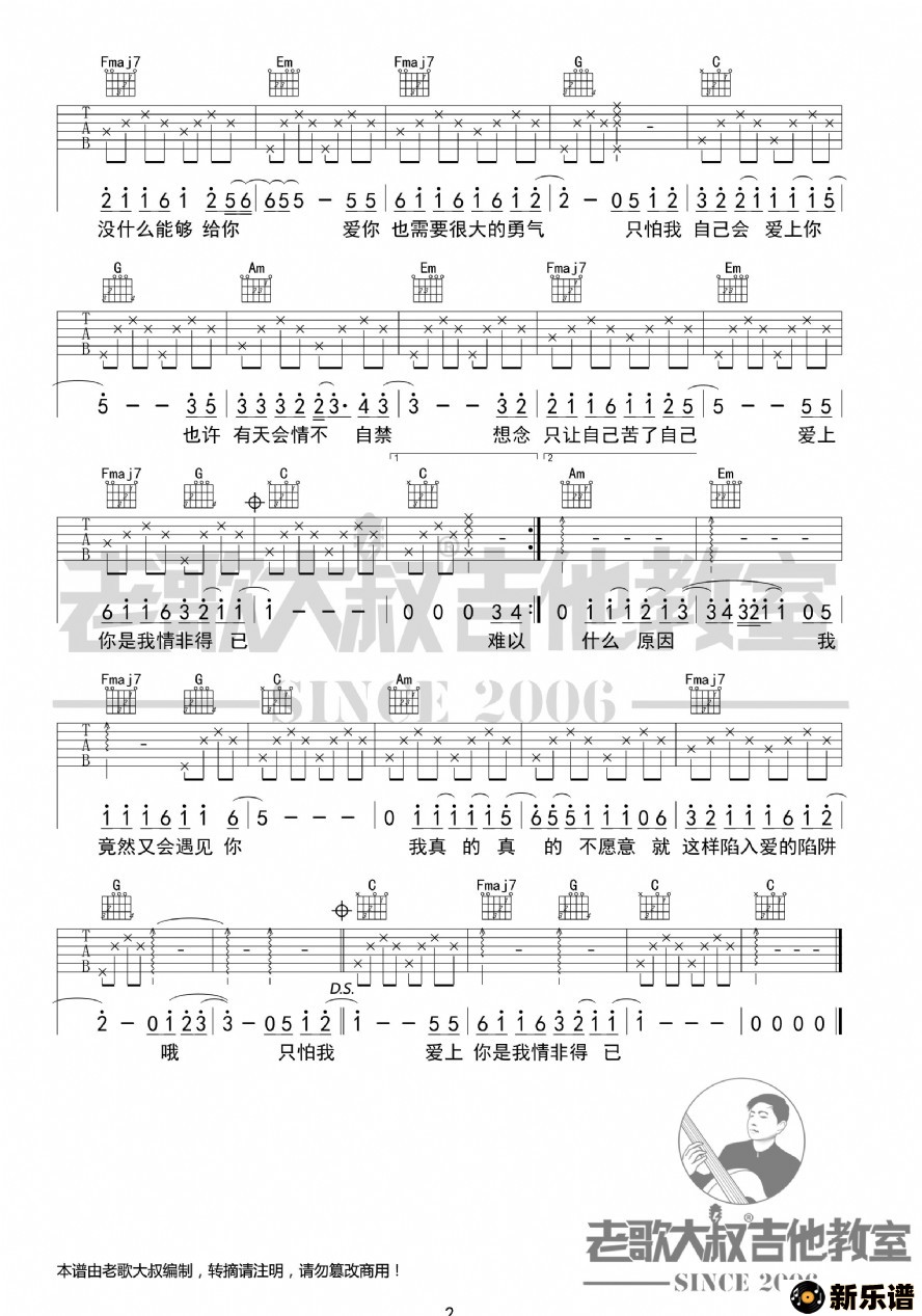 庾澄庆演唱的庾澄庆《情非得已》分解版超清谱 老歌大叔吉他教室出品歌词,庾澄庆《情非得已》分解版超清谱 老歌大叔吉他教室出品吉他谱.