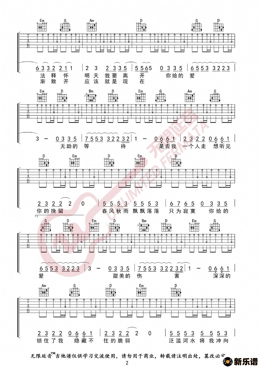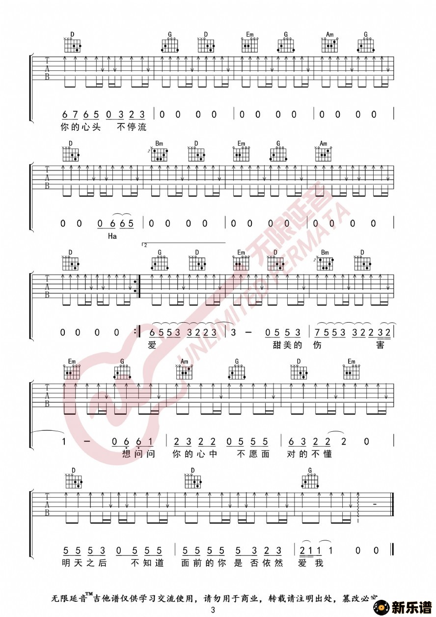 三厘米 吉他谱 六线谱 谭维维-谭维维