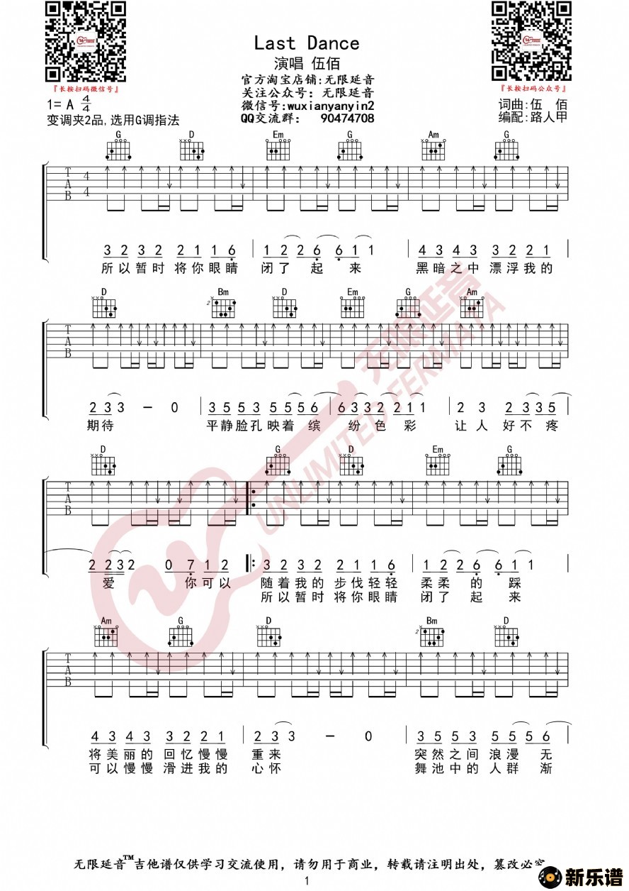 《伍佰 last dance 吉他谱》吉他谱 伍佰-无限延音制谱