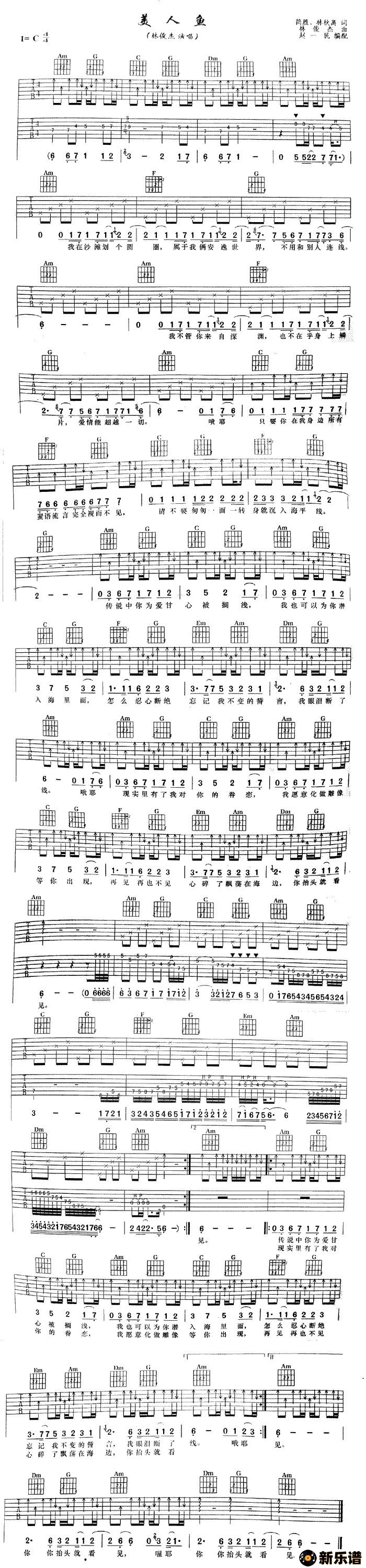《美人鱼》吉他谱 林俊杰