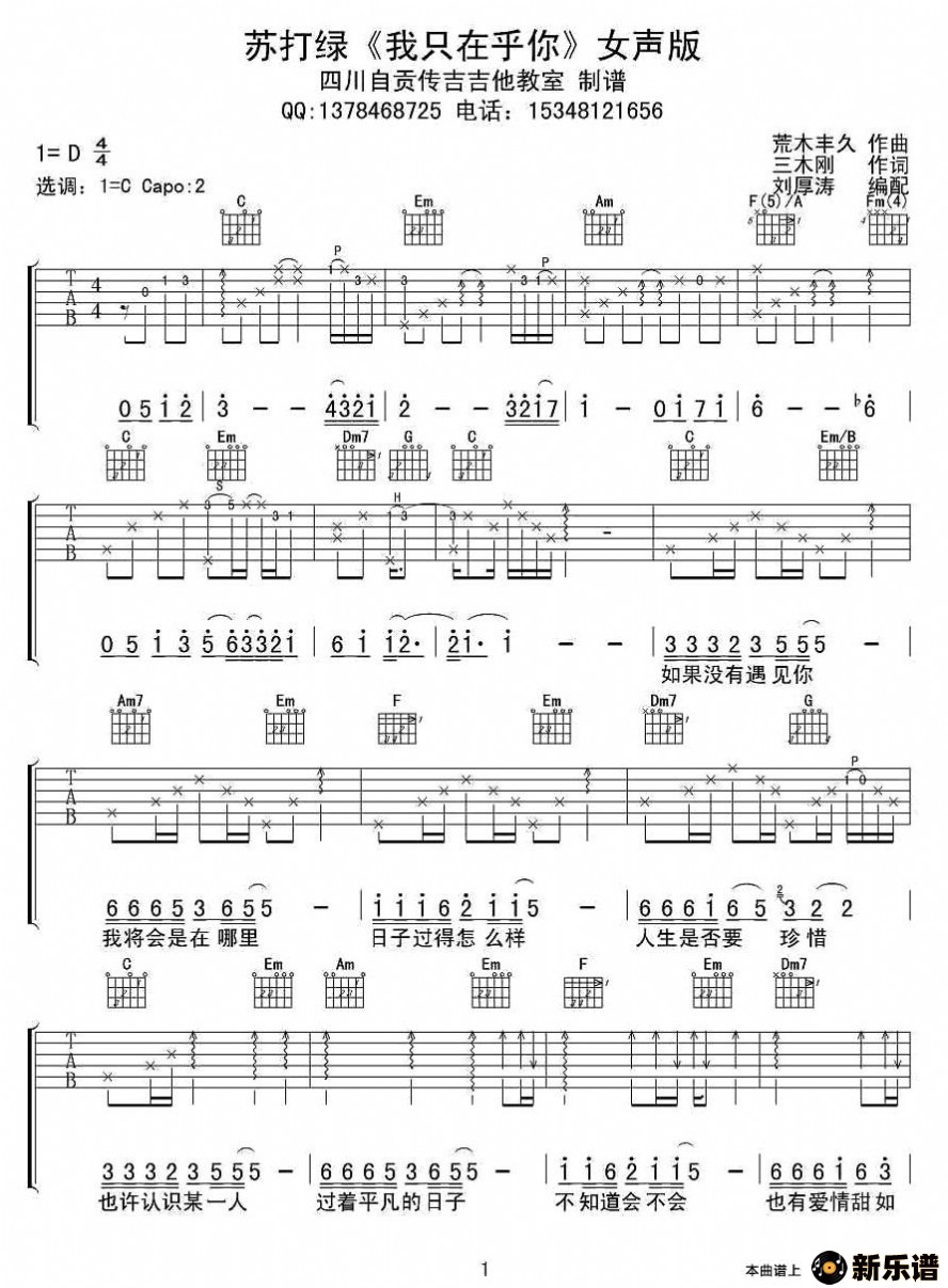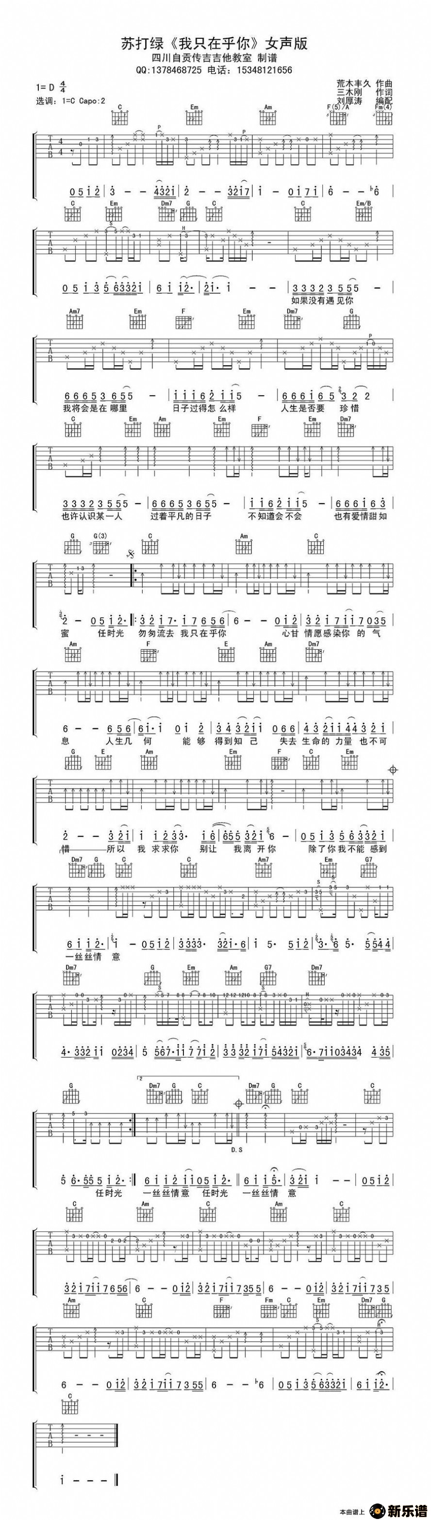 苏打绿演唱的我只在乎你歌词,我只在乎你吉他谱.