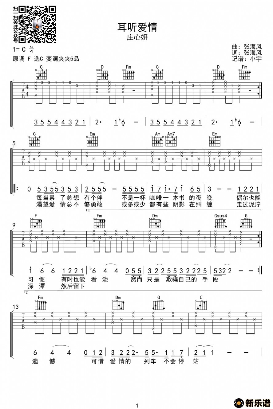 庄心妍演唱的耳听爱情歌词,耳听爱情吉他谱.