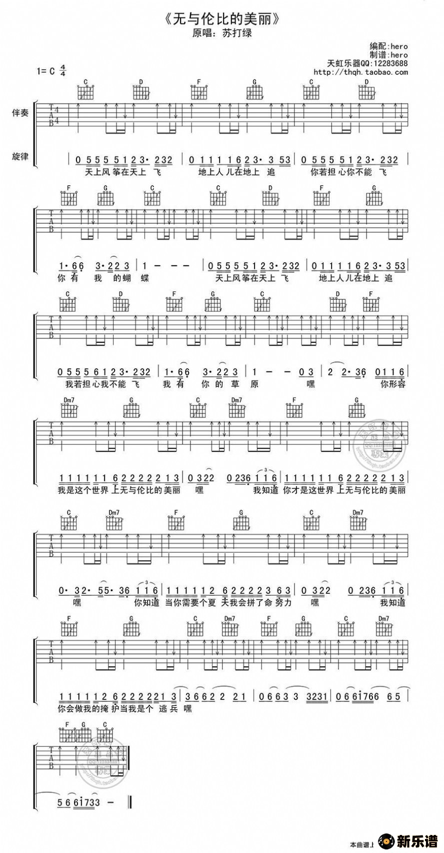 苏打绿演唱的无与伦比的美丽歌词,无与伦比的美丽吉他谱.