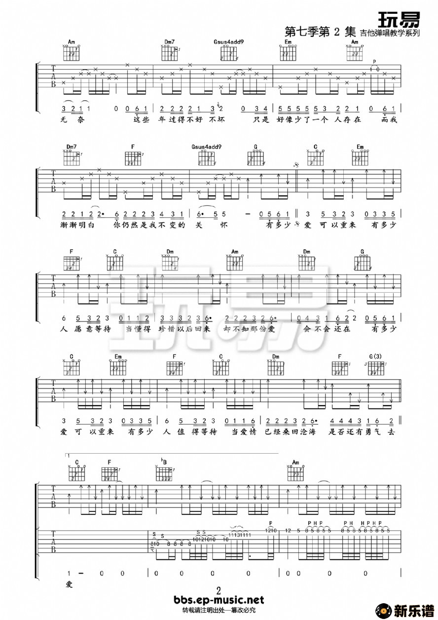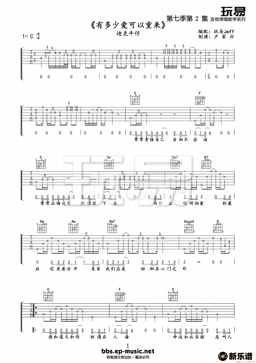 《有多少爱可以重来》吉他谱 迪克牛仔