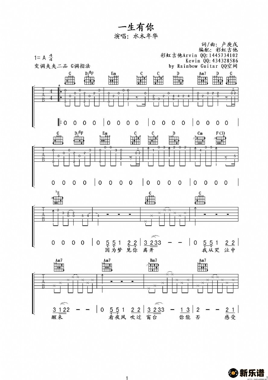 水木年华演唱的一生有你歌词,一生有你吉他谱.