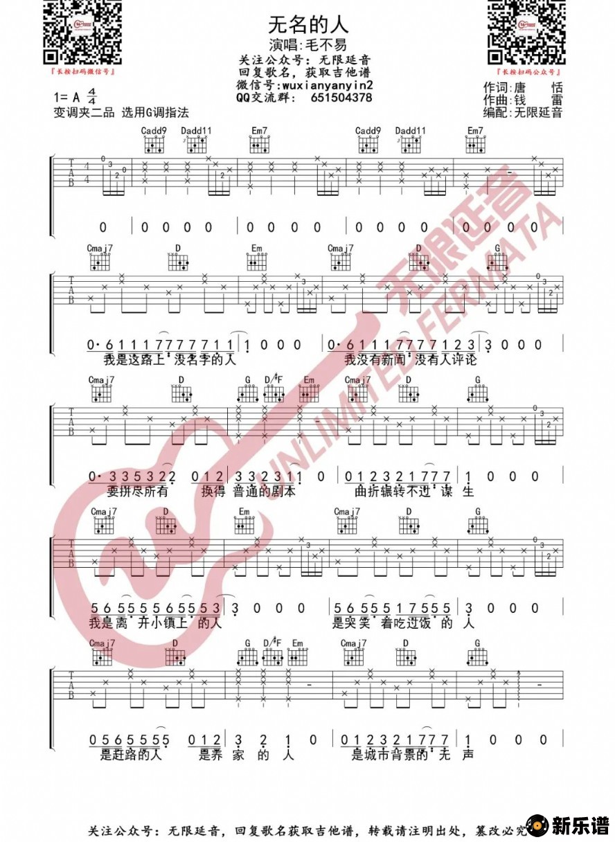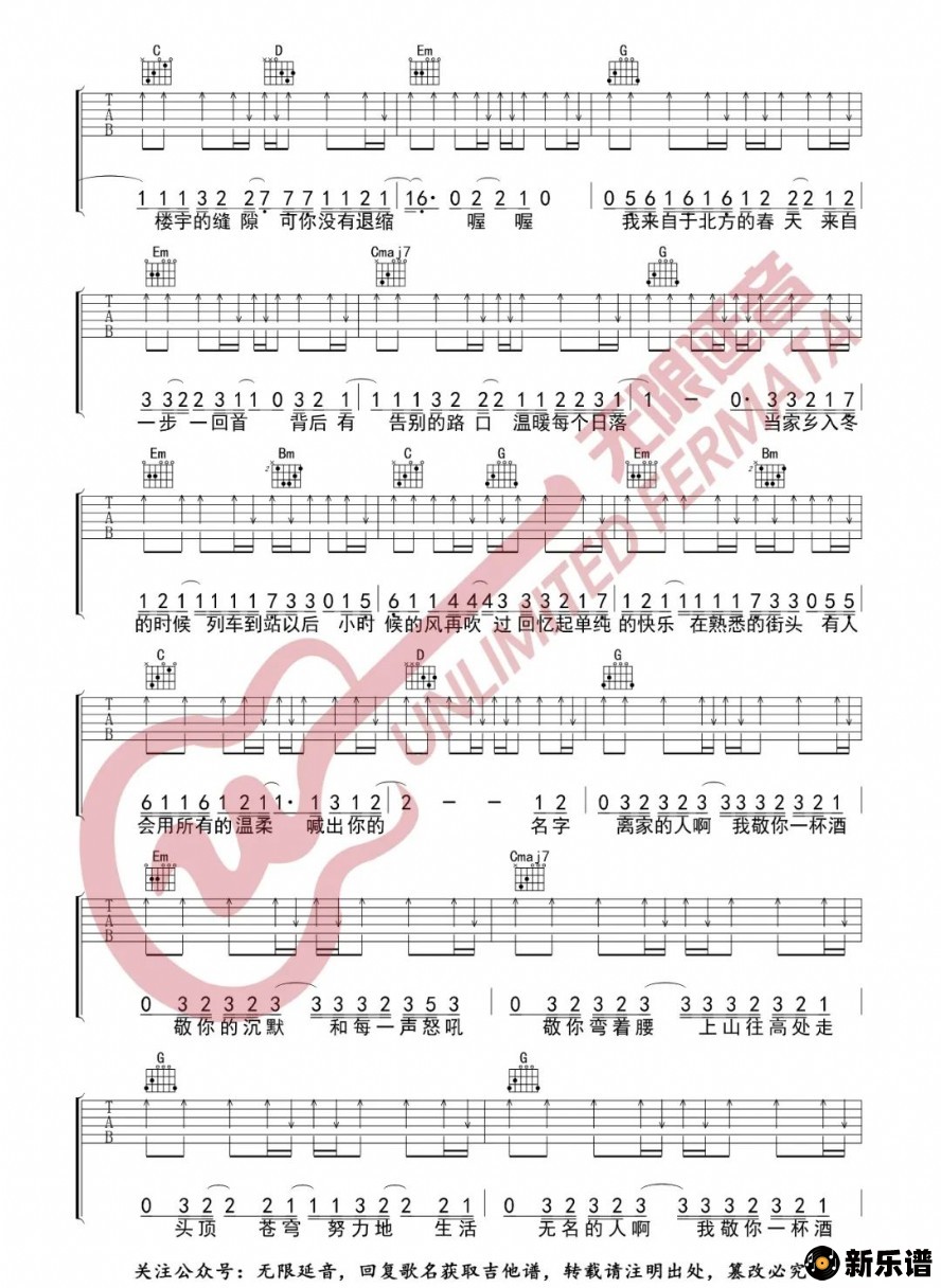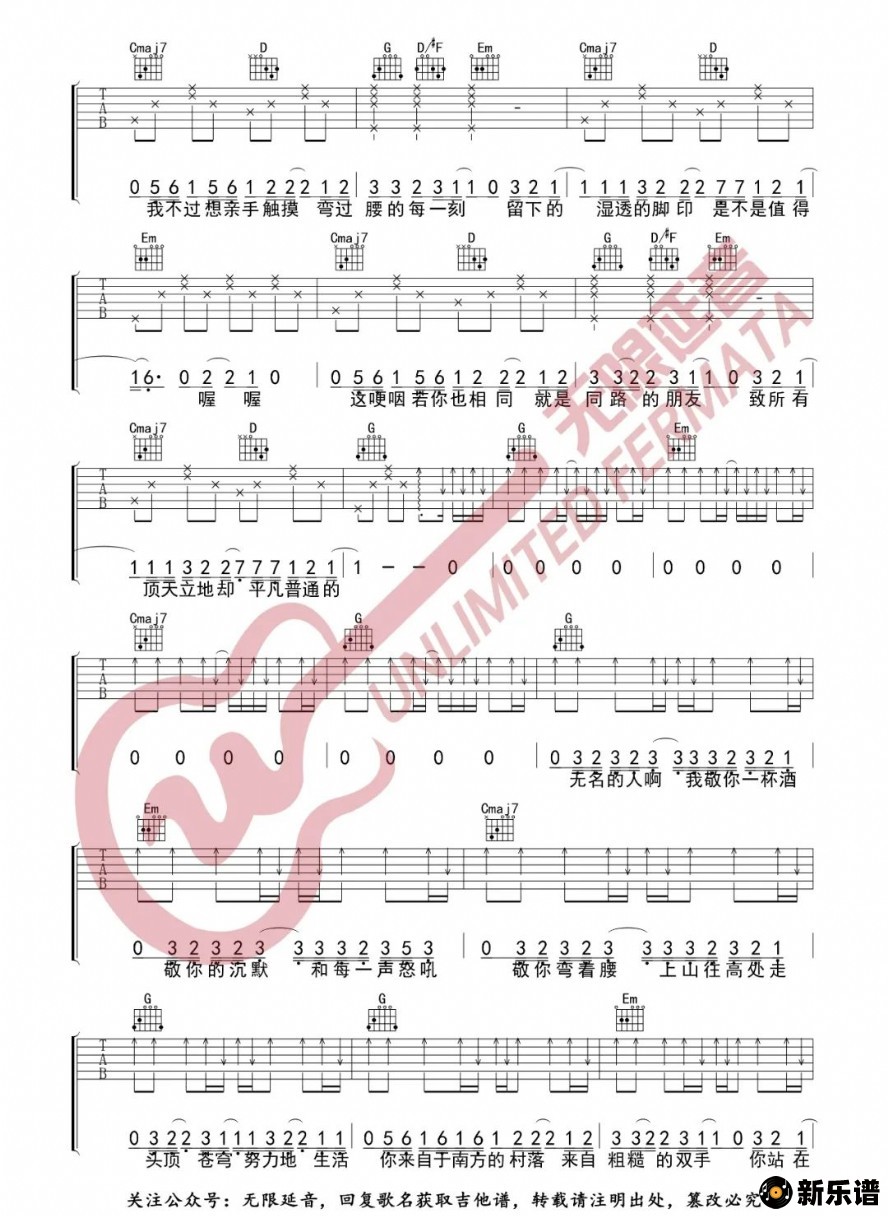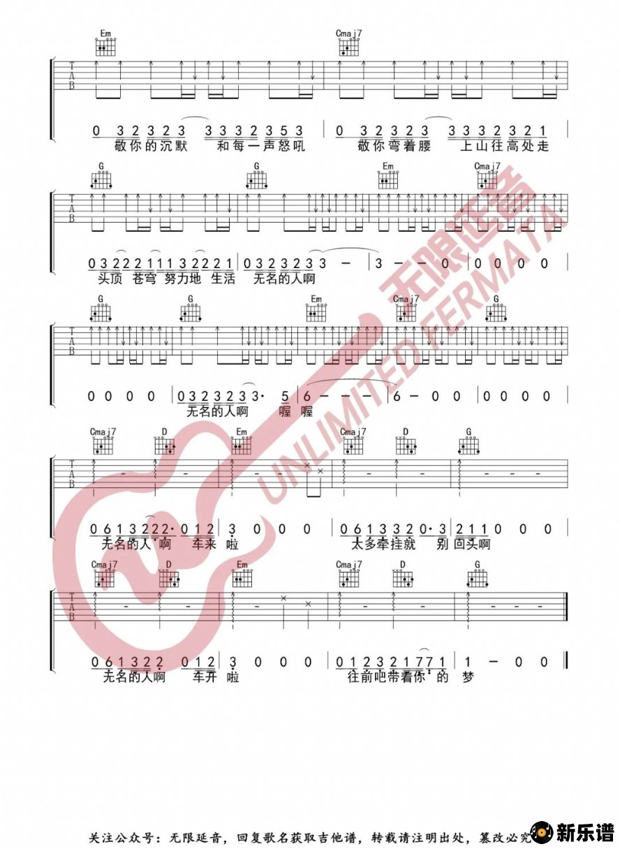 《无名的人(电影《雄狮少年》主题曲)》吉他谱 毛不易-无限延音制谱