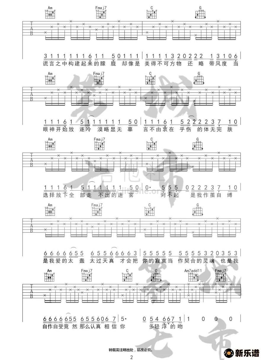 王忻辰/苏星婕演唱的清空歌词,清空吉他谱.