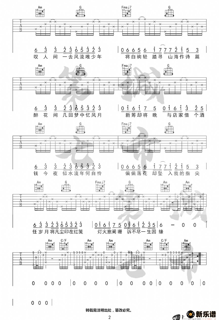 此吉他谱由新乐谱会员