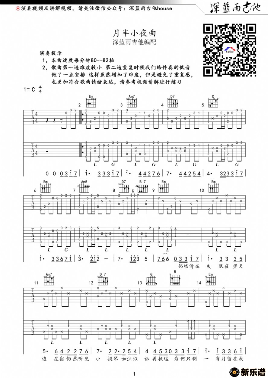 李克勤演唱的月半小夜曲歌词,月半小夜曲吉他谱.