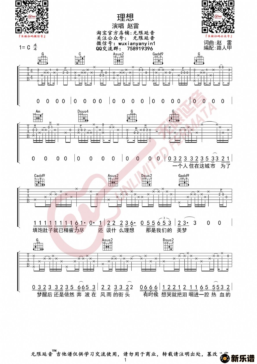 《赵雷 理想 吉他谱》吉他谱 赵雷-无限延音制谱