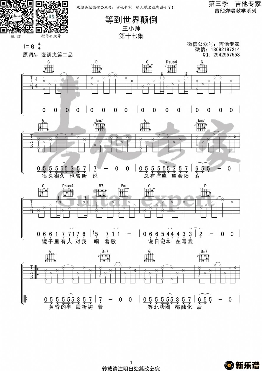 《等到世界颠倒 原版吉他谱》吉他谱 -吉他专家制谱
